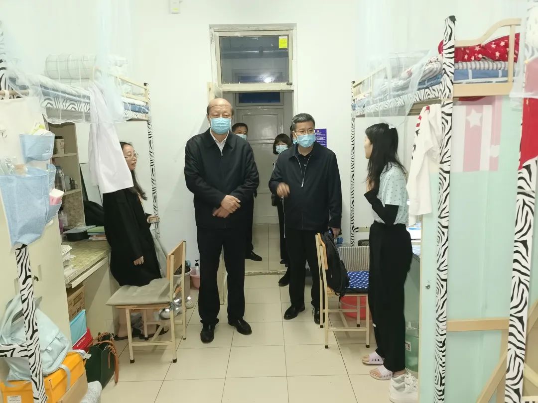 9月27日上午,学校疫情防控工作领导小组组长、党委书记,学校疫情防控工作总指挥、校长孙立军,党委副书记、工会主席郭砾,党委常委、副校长李庆霞深入教务处、学生公寓和食堂,就当前疫情防控进入应急状态下校内线上教学、学生食宿等场所的疫情防控工作开展情况进行督导检查。