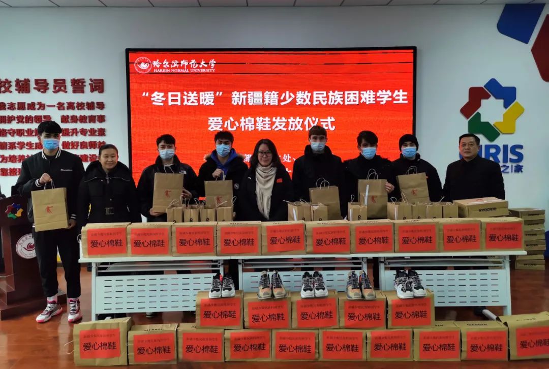 (曹傲然/文)为贯彻落实党的十九届六中全会精神,不断深化党史学习教育,扎实开展“我为群众办实事”实践活动,深入推进“春风送暖,夏日关怀,秋实筑梦,冬日暖阳”新疆籍少数民族困难学生四季关爱行动,11月24日,我校在崇师楼A102辅导员之家举行了新疆籍少数民族困难大学生爱心棉鞋发放仪式。校党委副书记、工会主席郭砾出席活动并与学生亲切交流。学生工作部(学生处、武装部)相关同志,全体新疆籍少数民族困难学生参加仪式。仪式由学生工作部(学生处、武装部)部(处)长王彦庆主持。