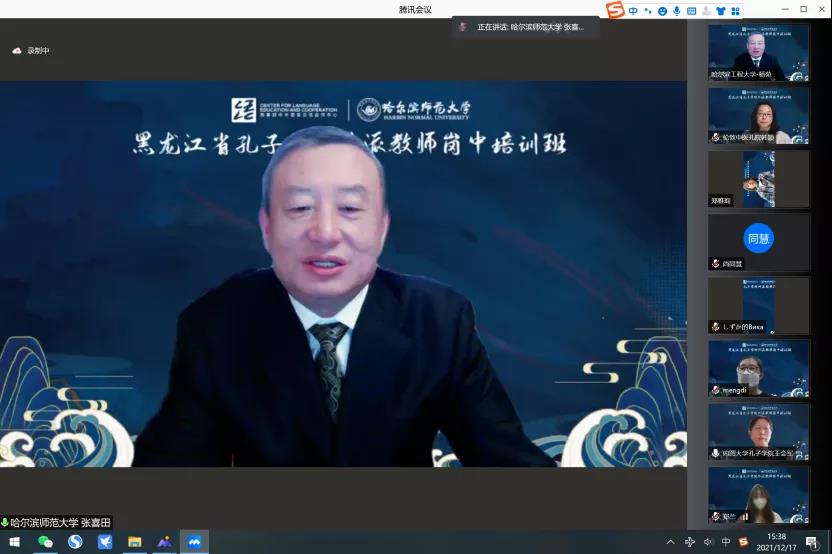 由教育部中外语言交流合作中心和黑龙江省教育厅主办、我校承办的2021年度黑龙江省孔子学院外派教师岗中培训于12月17日开班。省教育厅对外交流与合作处处长于子超,校党委常委、副校长张喜田出席开班仪式并致辞。开班仪式由我校国际交流合作处处长王彬主持。