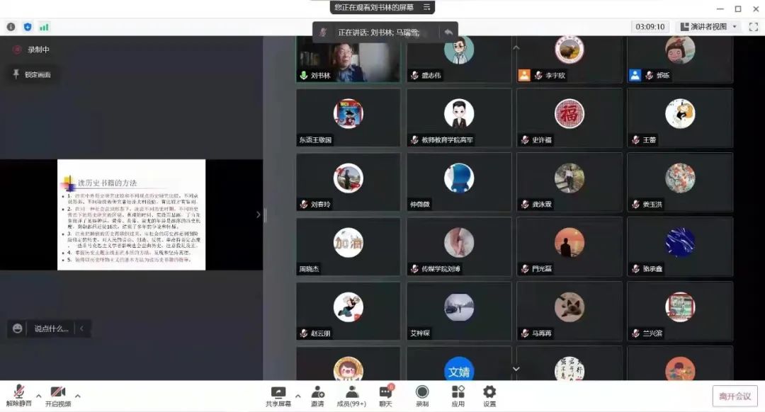 报告会上,刘书林教授结合自身的成长经历,围绕青年马克思主义研究者的读书、科研、就业等内容作了精彩报告。他从“读书”的目的和动力出发,通过理论学习、比较分析、归类总结的方法,阐述了学习马克思主义著作和人类历史科学著作需要阅读的书籍、掌握的重点内容及树立历史唯物主义立场观点;鼓励青年马克思主义者根据党和国家事业的需要积极投身理论战线工作,并根据党的中心工作及自身积累的研究基础确定研究方向,在选题中注重政治导向、问题导向、配合重大节点;叮嘱马克思主义理论学科青年博士在就业中要树立正确的价值观,要以“强国有我”的使命担当让青春绽放在中华民族伟大复兴的历史伟业之中,要始终坚持刻苦钻研业务,为人生的长远发展打下坚实的基础。整场报告站位高远,思想深邃,言辞中肯,分析透彻,既有世界观的把握,更有方法论的指点,与会人员受益匪浅,弄懂了有效读书的方法,明确了科研努力的方向,树立了业精于勤、终身学习的理念。
