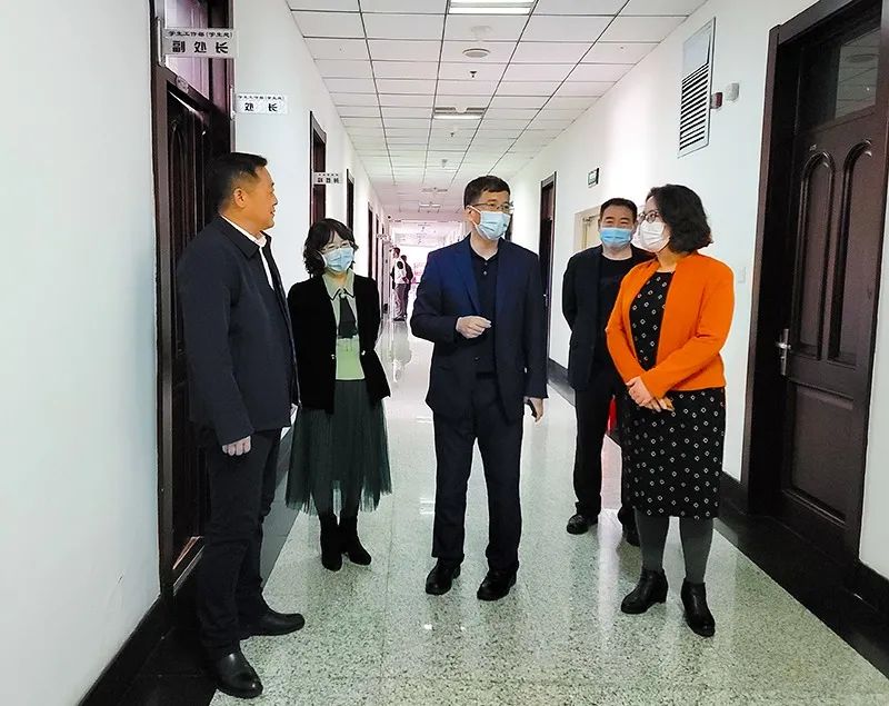 (盛志伟/文)2月28日,是学校新学期首个工作日。校长孙立军,党委副书记、工会主席郭砾,党委副书记李庆霞,党委常委、副校长马明带领相关部处同志深入机关各单位、各部门,走访慰问返岗的教职员工,并检查指导新学期开学准备工作。