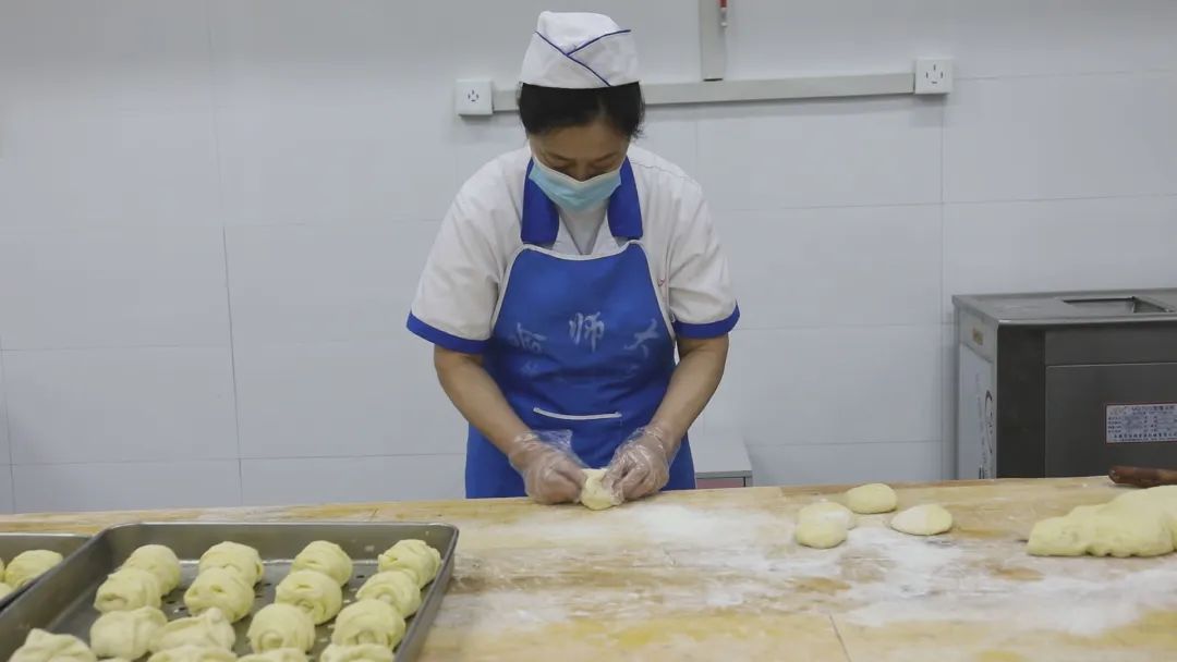凌晨2点,很多人还在熟睡,学校食堂后厨灯火通明,师傅们已经开始忙碌,有条不紊地制作各类早餐。短短时间,单调的食材在师傅们的揉、搓、捻、捏下变出各种花样,窗外依然漆黑,各式各样的面食在蒸汽中渗发出阵阵香味,包子、菜团子、豆沙饼、饺子等20余种主食热腾腾地陆续呈现在柜台里,等待师生品尝。这是食堂工作人员的工作常态,也是产业处各位同志的工作缩影。据了解,食堂每天要制作近2000个包子,忙碌时,工作人员将通宵达旦工作。
