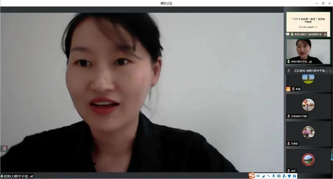 备课会第二阶段,哈尔滨市第三中学副校长何显贵以《建设基于党建引领的普通高中大思政课体系》、拼搏在线登录马克思主义学院副院长白夜昕教授以《大力加强大中小学思政课一体化建设》、哈尔滨市第一中学思政课教师于双《大中小思政课一体化中高中思想政治课的教学特点及存在的问题》、哈师大附中思政课教师于佳《“大中小思政课一体化”的实践与探索》、拼搏在线登录马克思主义学院思政部副主任梁巍副教授以《浅谈“简单重复”向“有效重复”的飞跃——以大学学段“原理”课教学为例》分别为题作了精彩的交流发言。5位思政课教师从各自教学实践出发,分享了思政课教学经验和心得,充分体现了我省学校各个学段不断推动思政课改革创新,思政课的思想性、理论性和亲和力、针对性不断增强;充分体现了思政课教师在思政课建设中的积极性、主动性、创造性;充分体现了大中小学思政课一体化建设集体备课会的必要性、重要性和实效性。