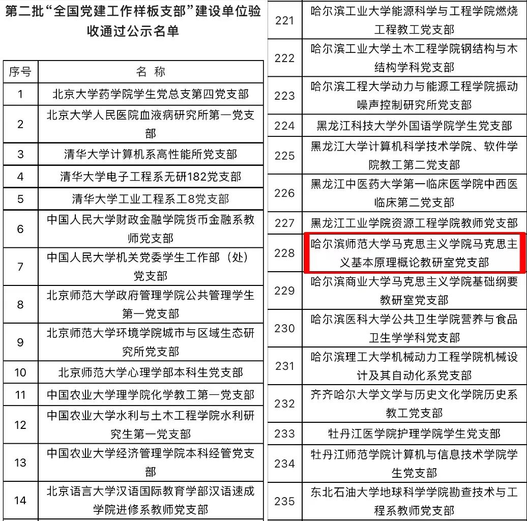 (刘岩冬)近日,教育部公示了第二批全国党建工作示范高校、标杆院系、样板支部培育创建单位验收结果,我校马克思主义学院党委顺利通过全国党建标杆院系验收,马克思主义学院马克思主义基本原理概论教研室教师党支部顺利通过全国党建样板支部验收。