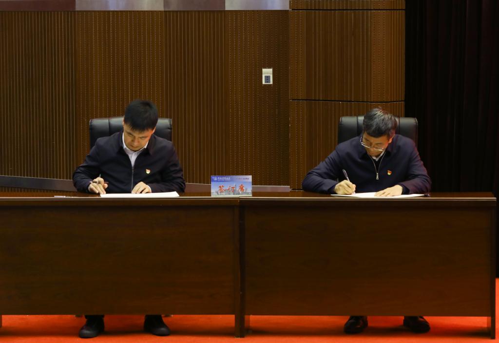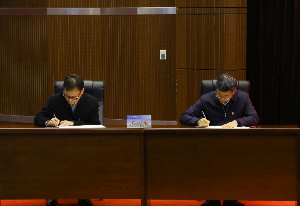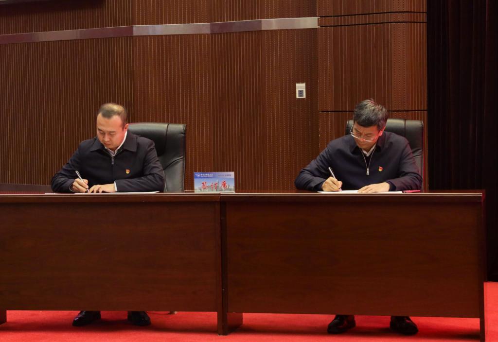 孙立军代表学校党委分别与基层党委书记代表,经济与管理学院党委书记蒙国军、物理与电子工程学院党委书记邓铁男、体育科学学院党委书记韩大伟等签订《全面从严治党责任书》。与会人员还集中观看了警示教育片《永远吹冲锋号》。