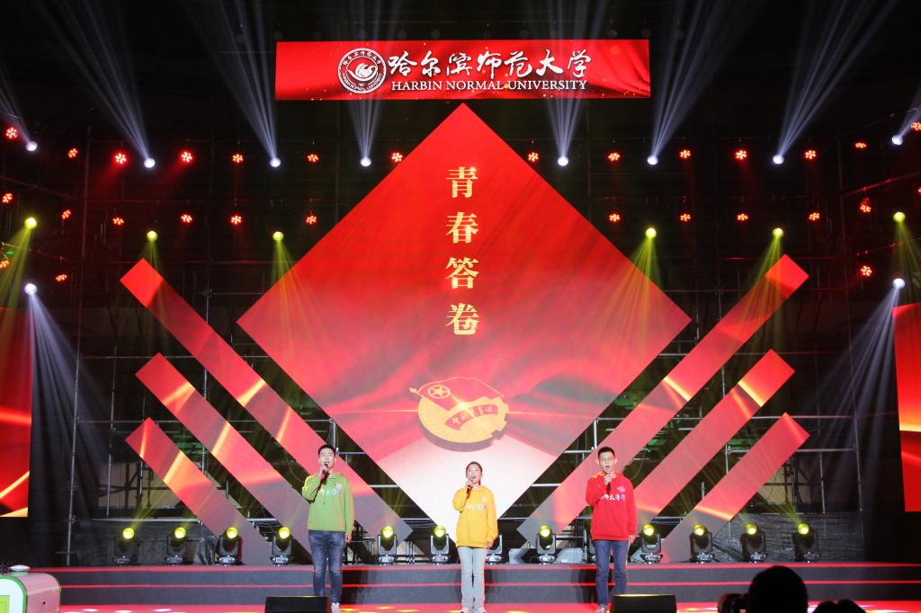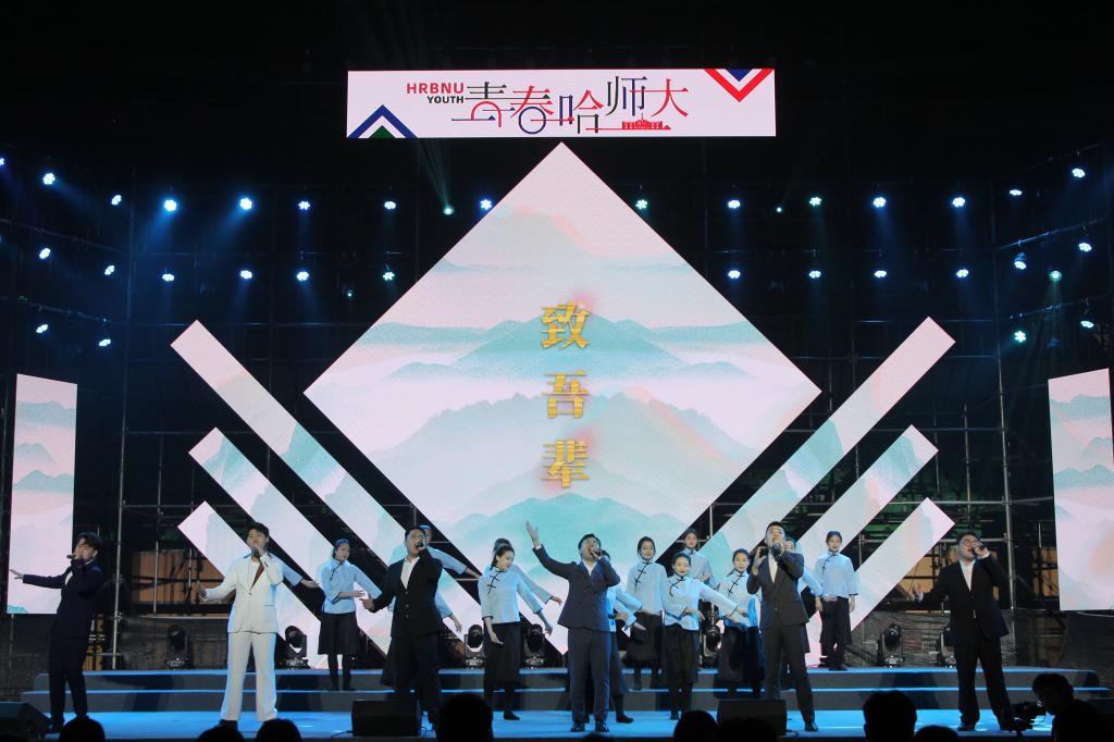 表彰大会在歌舞表演《致吾辈》中拉开帷幕,歌曲优美气势恢弘,舞蹈舒展美轮美奂,展现出新时代青年在光辉党旗的指引下奋勇拼搏、勇立潮头的青春风采。情景剧《觉醒年代》回顾了中国革命的峥嵘岁月,生动形象地再现了有志青年对国家的大爱,让观众身临其境,潸然泪下。我校3位优秀青年学生带来的情景讲述《青春答卷》,结合个人在师大学习生活经历,分享了自己的成长故事,三人以初心为笔,以拼搏为墨,向母校师大交出了一份靓丽的“青春答卷”。音乐学院教师倾情献唱《青春为你而歌》,展现了老师们对团员青年的殷切期望和美好祝愿。朗诵《闪耀吧,青春的火光》慷慨激昂、饱含深情,引发全场共鸣,展现了新时代哈师大青年青心向党、昂扬向上的精神风貌。