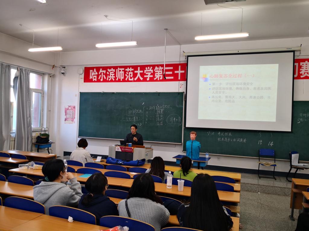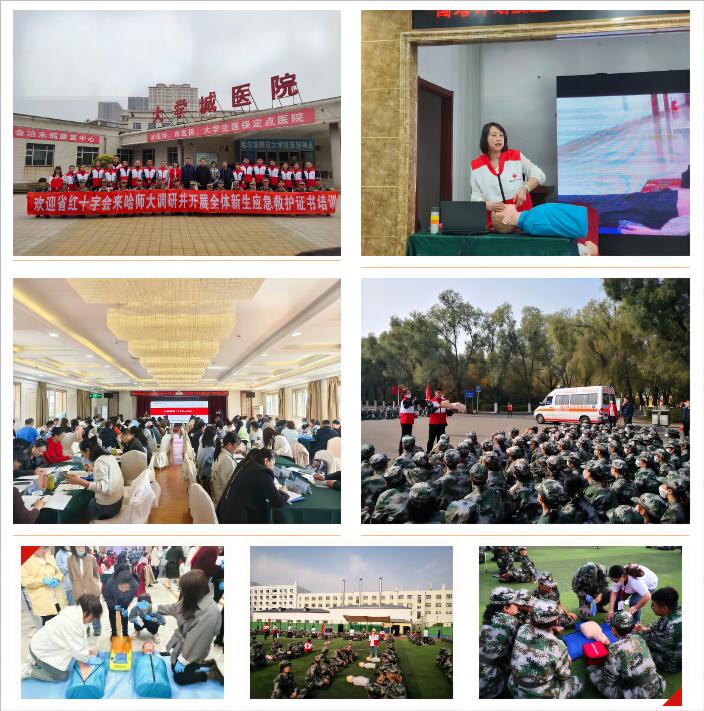 在校园急救工作方面,我校通过装配急救设备、开展健康教育选修课、举办急救讲座培训等多种方式,在师生中大力推广应急救护知识和技能,让同学们深刻了解急救的概念,掌握急救知识与技能,尤其是被确定为首批全国急救教育试点学校,成立黑龙江省培训基地,与黑龙江省红十字会共同成立应急救护教学基地后,急救教育工作更加正规化、专业化、科学化。2022年,我校共培训7781名新生,100余名教职工,近半年,培训校内外人员1000余人。