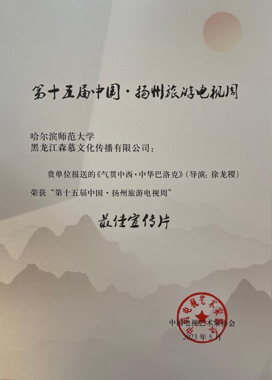 (张蕊/文)5月16日,由中国电视艺术家协会主办的“第十五届中国·扬州旅游电视周”优秀作品推选仪式在扬州举行,我校传媒学院师生团队创作作品《气贯中西·中华巴洛克》在活动中荣获“最佳宣传片”奖项。