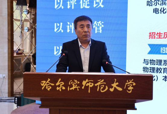 孙立军简要介绍了我校发展历程。他指出,教师教育是哈师大最鲜明的办学“特色”“底色”和“亮色”,是哈师大始终坚守的“根”和“魂”。2018年以来,我校以师范类专业认证为抓手,以“学生中心、产出导向、持续改进”的认证理念推动师范类专业教学改革,引导师范类专业聚焦新时代毕业生核心能力素质培养,对标认证标准,坚持问题导向,补足专业建设短板。通过修订本科人才培养方案,优化课程体系,制定面向产出的教学大纲,开展课程目标、毕业要求、培养目标达成情况评价,课程体系合理性评价以及培养目标合理性评价,逐步建强“两线”,筑牢“底线”,形成面向产出的持续改进质量保障机制和质量文化。