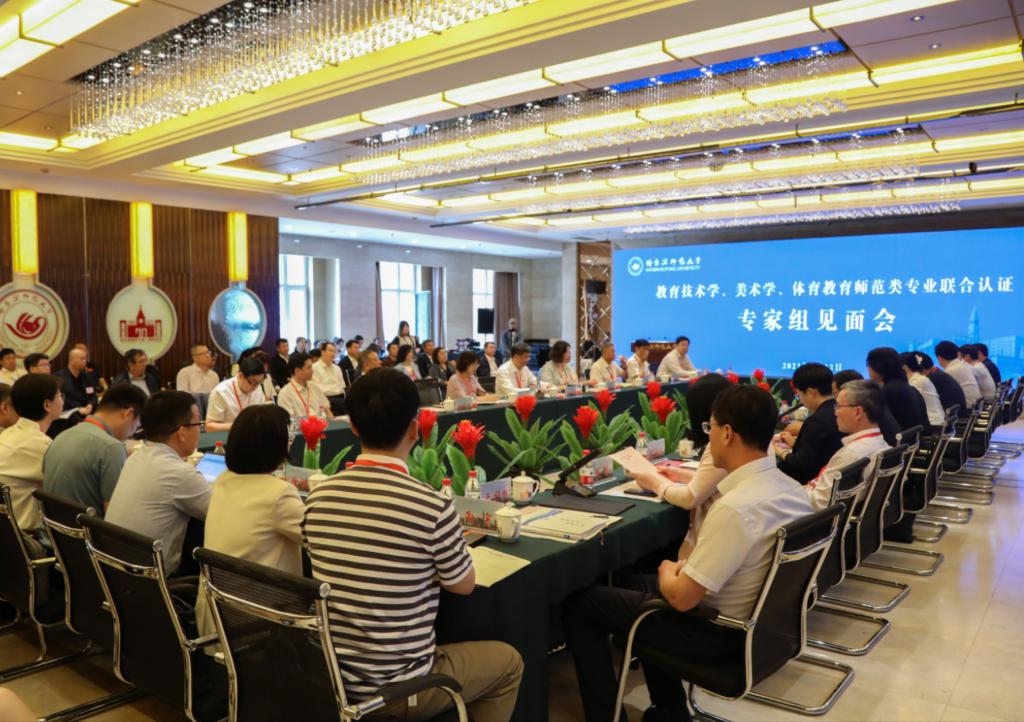 6月12日上午,学校在梦溪宾馆金色大厅召开师范类专业认证专家组见面会。联合大组长兼教育技术学专业认证专家组组长、东北师范大学郑燕林教授及成员辽宁师范大学教育教学质量监控与评价中心肖立莉教授、曲阜师范大学张良才教授、河南省基础教育课程与教学发展中心教师部戢明主任,秘书常熟理工学院师范学院徐祖胜副教授;美术学专业认证专家组组长鲁迅美术学院李书春教授及成员华中师范大学美术学院王文新教授、宁波大学教育督导与教学评估中心郑春龙研究员、甘南县第二中学李发校长,秘书黑龙江省农业工程职业学院智能分院刘勇副教授;体育教育专业认证专家组组长陕西师范大学体育学院万炳军教授及成员白城师范学院金向军教授、南京师范大学体育科学学院王庆军教授、佳木斯市教育局于庆澎调研员,秘书河南省教育评估中心认证部郑晓玲副主任;省教育评估院院长景丽英、项目管理员张立明出席会议。我校党委书记孙立军,党委副书记、工会主席郭砾,党委副书记李庆霞,党委常委、副校长马明,党委常委、副校长张喜田,党委常委、纪委书记、省监委驻拼搏在线登录监察专员姜国庆,党委常委、副校长王辉,党委常委、副校长徐国峰,党委常委、人事处处长李世彬,党委常委、统战部部长张志宏,相关职能部门负责人,教育科学学院、美术学院和体育科学学院领导班子及参评专业负责人参加会议。