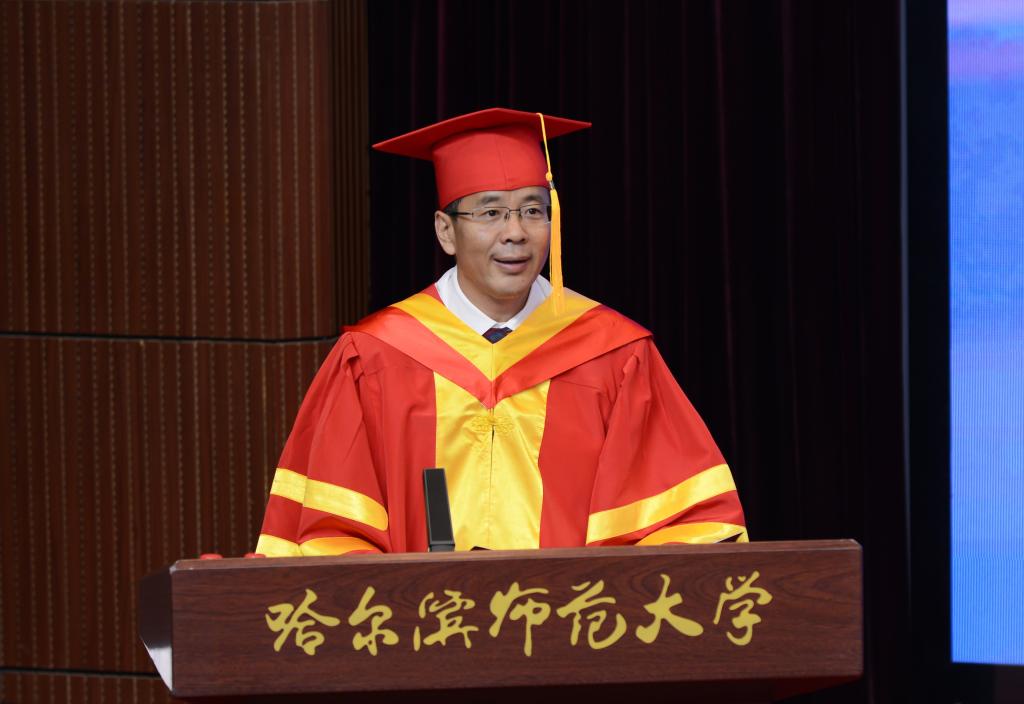 校学位评定委员会主席、党委书记、博士研究生导师孙立军教授在致辞中,代表全校师生员工向被授予学位的9904名毕业生表示诚挚的祝贺和美好的祝愿,向辛勤养育、悉心教导学生成长成才的家长和老师表示衷心的感谢和崇高的敬意。
