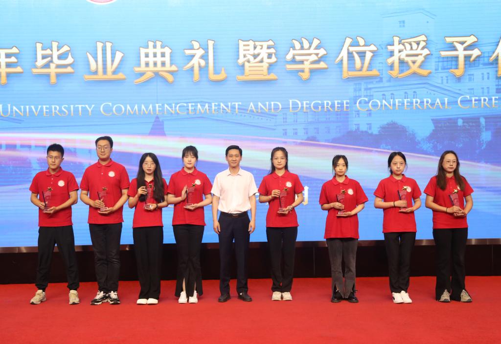 党委副书记、工会主席郭砾为2023届优秀毕业生代表颁发荣誉证书