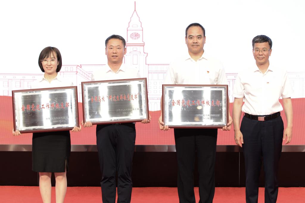 在《红旗颂》深挚动人的旋律中,党委书记孙立军、省委主题教育第十七巡回指导组副组长闫国荣等领导为获得国家级、省级各类党建成绩的党组织代表和获得学校“两优一先”的党组织和个人代表颁奖。获奖同志是我校先进基层党组织和优秀个人的典型代表,学校各级党组织围绕中心、服务大局,积极发挥党组织战斗堡垒作用,不断提升战斗力、凝聚力和创造力,涌现了一大批主动作为、敢于担当,以强烈的事业心和责任感做好本职工作的先进模范。