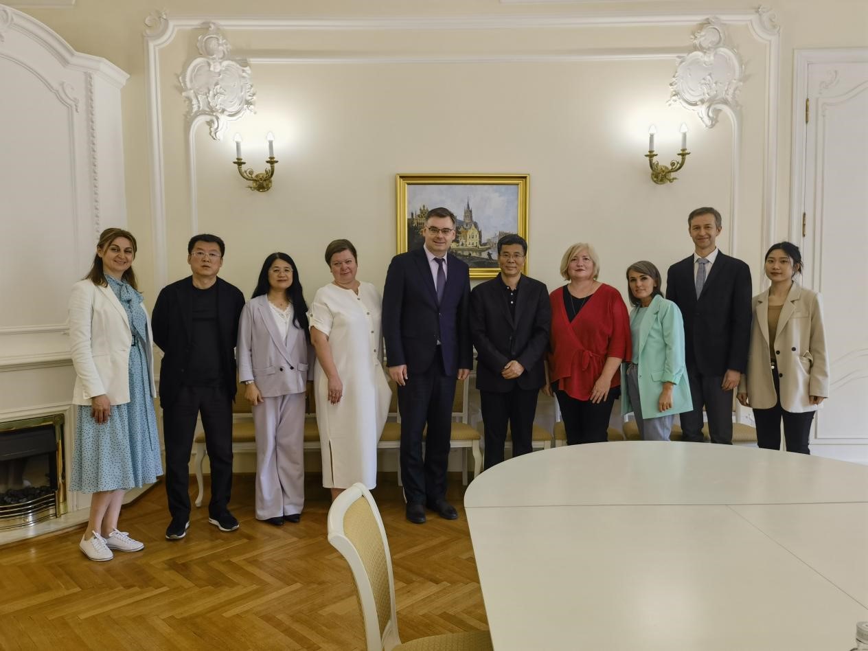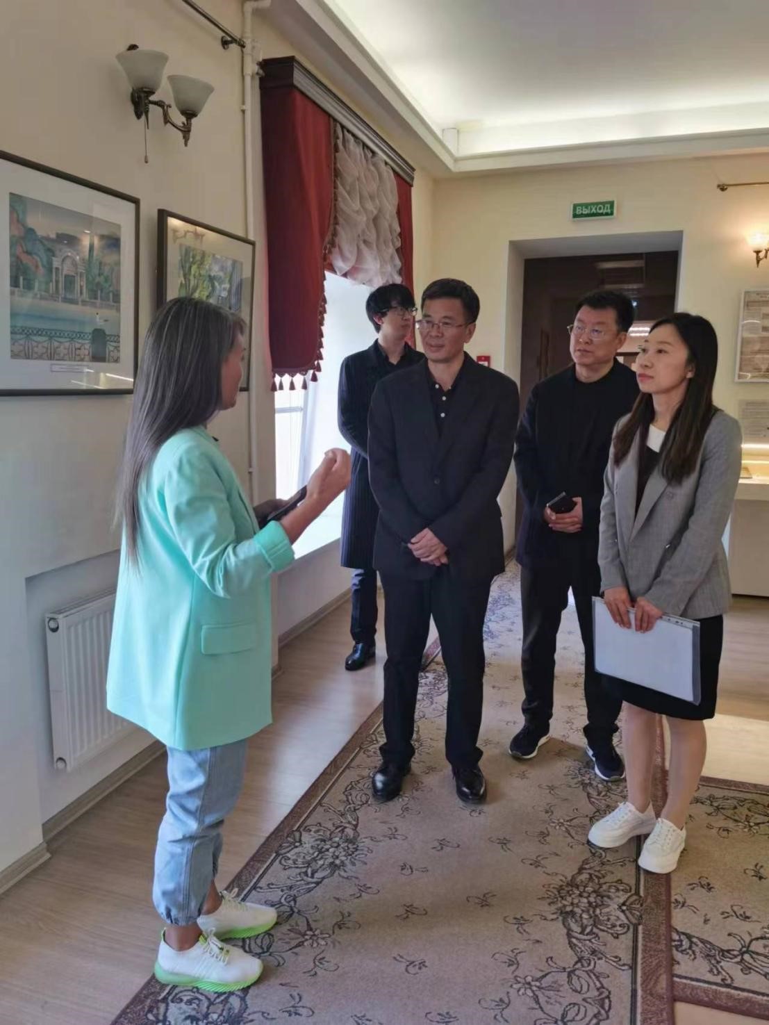 (林云贺/文)为助力我省打造向北开放新高地,扎实推动教育向北开放发展五年行动,切实提升我校对俄合作水平,加快推进“中俄美术联盟”筹备工作,7月3日至7月5日,党委书记孙立军率代表团先后访问了俄罗斯科学院斯拉夫学研究所、俄罗斯莫斯科国立苏里科夫美术学院和俄罗斯赫尔岑国立师范大学,并取得丰硕成果。斯拉夫语学院院长赵秋野、国际美术学院院长李岗、国际交流合作处翻译林云贺陪同访问。