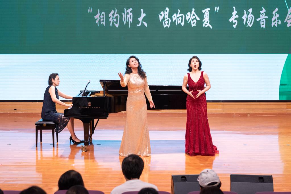 整场音乐会琴声百转、曲意飞扬,我校音乐学院教师们以独唱、重唱、独奏、重奏等多种形式演绎经典、讴歌时代,历年来在哈夏音乐会期间为冰城观众献上多场高水平、高标准的艺术盛宴,学校承办的“国际手风琴艺术周”被列入第36届哈夏音乐会七大板块之一,用哈师大旋律唱响哈尔滨之夏“人民幸福”“山水共融”“美美与共”的盛世欢歌。