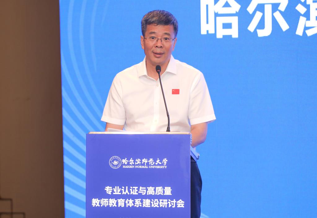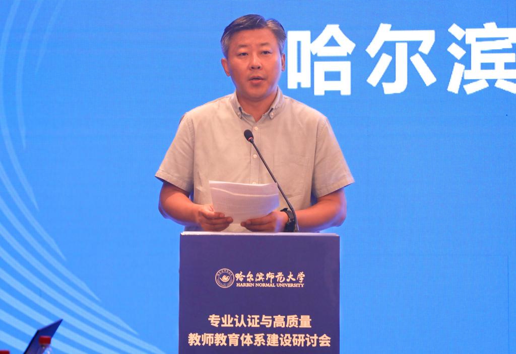 (李小雨/文)为进一步提升我校师范类专业建设水平,系统梳理师范类专业认证面临的问题与挑战,深入分析瓶颈问题产生的原因,提出解决问题的路径方法,助力教师教育高质量发展,8月5日,我校组织召开“师范类专业认证与高质量教师教育体系建设”研讨会。黑龙江省教育厅副厅长程爽出席会议并致辞。我校党委书记孙立军出席会议并致欢迎辞,校长蒋鲲出席会议并主持开幕式。普通高等学校师范类专业认证专家委员会秘书处周爱军秘书长及部分国内师范类专业认证核心专家、师范类院校领导出席会议并参加研讨。我校各学院院长、副院长,各教学职能部门同志和教师代表等参加会议。