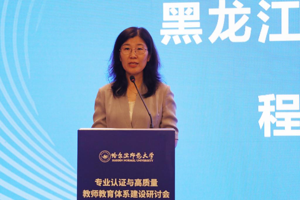 黑龙江省教育厅副厅长程爽在致辞中代表省教育厅对会议的召开表示祝贺,对与会专家领导的到来表示欢迎,对长期支持和关注黑龙江省师范类专业建设工作的专家领导表示感谢。她介绍了我省师范类专业认证的开展情况,对拼搏在线登录在黑龙江省基础教育中的重要贡献和引领作用给与充分肯定。针对构建我省高质量教师教育体系的问题她提出三点意见:一要坚守师范教育初心使命,推进师范教育内涵式建设。要强化师范院校“师范为本”的办学定位,把师范教育作为核心竞争力,对接国家战略和龙江区域经济发展需求,对接高质量教师教育体系建设新要求,积极探索、切实加强我省师范教育内涵式建设。二要推进师范类专业认证工作,建立完善持续改进机制。要结合实际,继续开展师范类专业二级认证,积极争取师范类专业三级认证,全面促进我省师范类专业高质量发展;要着力提升全省各师范类专业对认证理念的认识自觉和行动自觉,真正实现“以评促建重规范、以评促改上水平、以评促强创一流”,推动建立自我评价、自我改进、自我监督的持续改进机制。三要共建共享教育教学资源,实现师范类专业协同创新发展。要建立全省师范类专业学习交流和资源共享机制,协同提升专业建设质量,让我省师范类专业为培养党和人民满意的高素质、专业化、创新型教师队伍提供有力的人才支撑,为振兴龙江教育发展贡献力量。