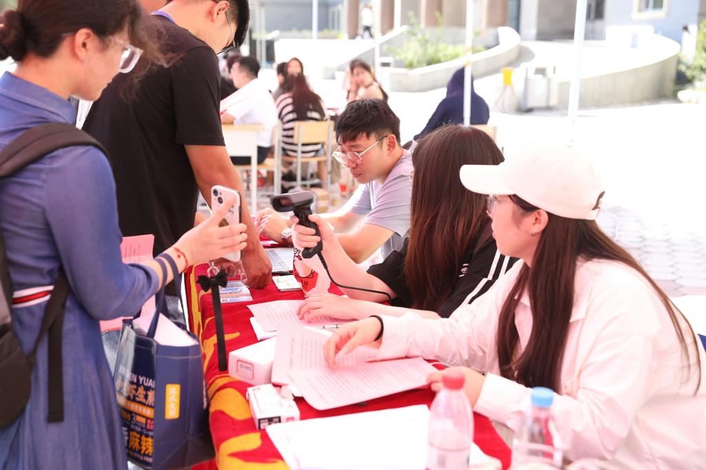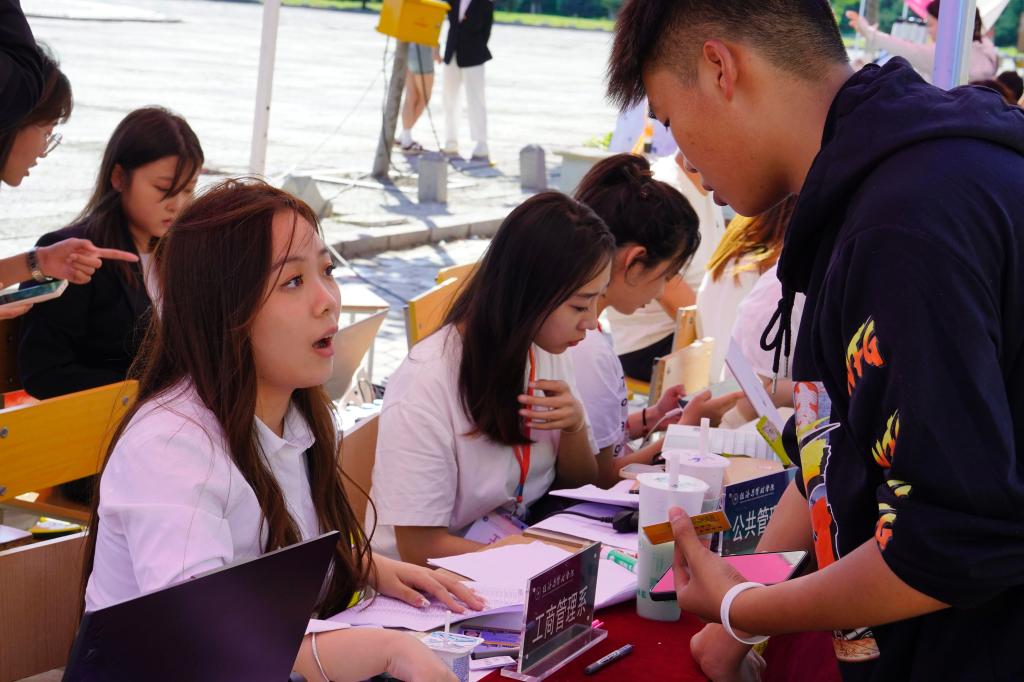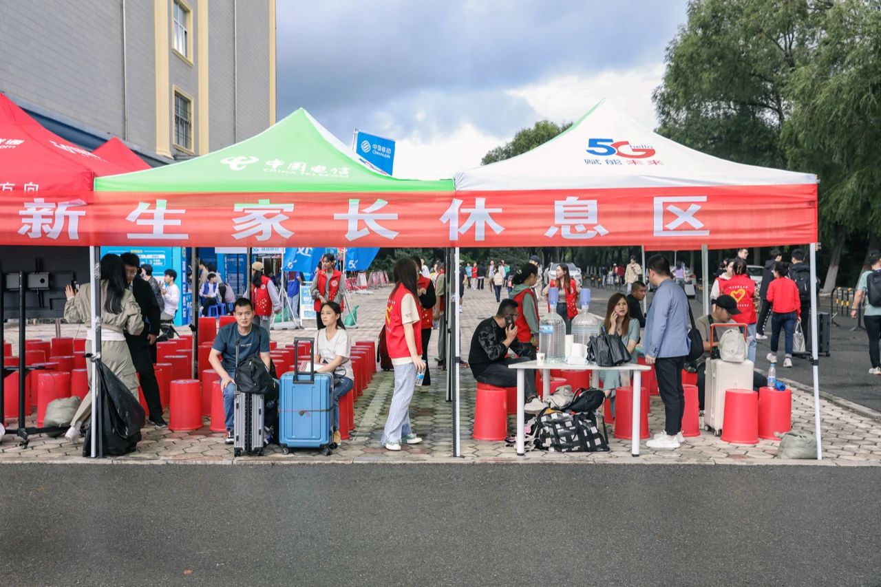 在“热烈欢迎2023级新同学”的红色拱门后,各具特色的学院迎新报到处以及热情洋溢的志愿服务点在道路两侧一字排开,热闹非凡。各部门及各学院师生以饱满的精神状态和热情周到的服务,为新生提供“从入校门到公寓寝室”全程引导服务,近千名志愿者同学投入到展台布置、行李运输、道路指引、信息咨询等各项迎新工作的志愿服务,让新生充分感受学校的热情与温暖。