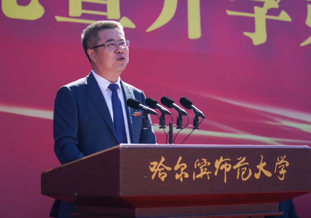 教师代表、校第十六届“教学名师奖”获得者、传媒学院教师祁博在发言中表示,每一位走进哈师大的学子,都是蕴藏着希望和潜能的种子,每一位哈师大教师将用“敦品励学,弘毅致远”的校训精神引领你们在知识的土壤里生根发芽,在人生的舞台上绽放夺目的光彩。