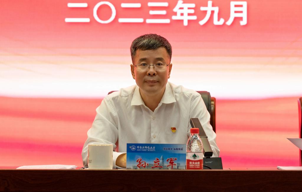 孙立军强调,总书记的重要讲话重要指示,是我们做好各项工作的总遵循、总纲领、总指引。全校各级党组织、广大党员干部要深入学习、对标对表、知行合一,以更高站位、更高标准、更大力度、更实举措抓好贯彻落实。要把总书记的重要讲话重要指示与贯彻落实党的二十大精神和党中央决策部署、与学习贯彻总书记对东北地区和我省历次重要讲话重要指示精神贯通起来,脚踏实地、求真务实,开创我校高质量发展新局面。全校上下要坚持把高质量发展的基点放在创新上。稳步加强基础研究,持续推进实施学科专业设置优化改革,加快建设中国特色高质量研究生教育体系,深入推进国家教育数字化战略行动,进一步提升服务龙江产业升级能力。要积极服务龙江数字经济、生物经济、冰雪经济和创意设计产业,为我省做好“四大经济”聚合融合文章提供支撑,以科技创新赋能龙江现代化产业体系建设。学校要充分发挥教育部重点实验室、省级重点实验室、省级定位观测研究站、省级高端智库、创意设计产业学院、创意设计产业园区等平台社会服务功能,主动对接我省产业振兴行动计划,高质量服务我省4567现代产业体系构建和哈尔滨市“创意设计之都”建设,为龙江全面振兴全方位振兴提供智力支持。