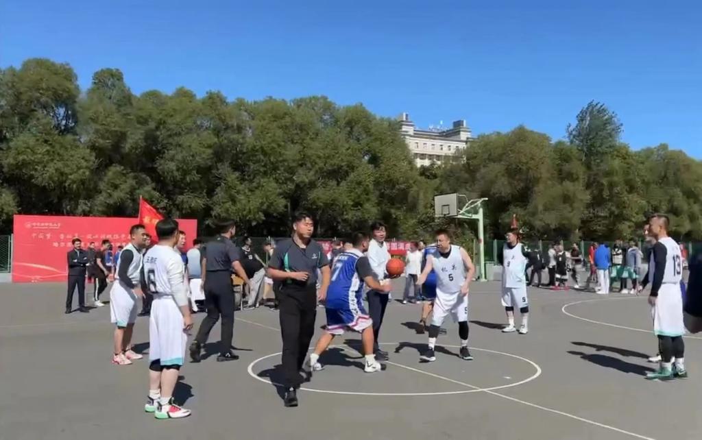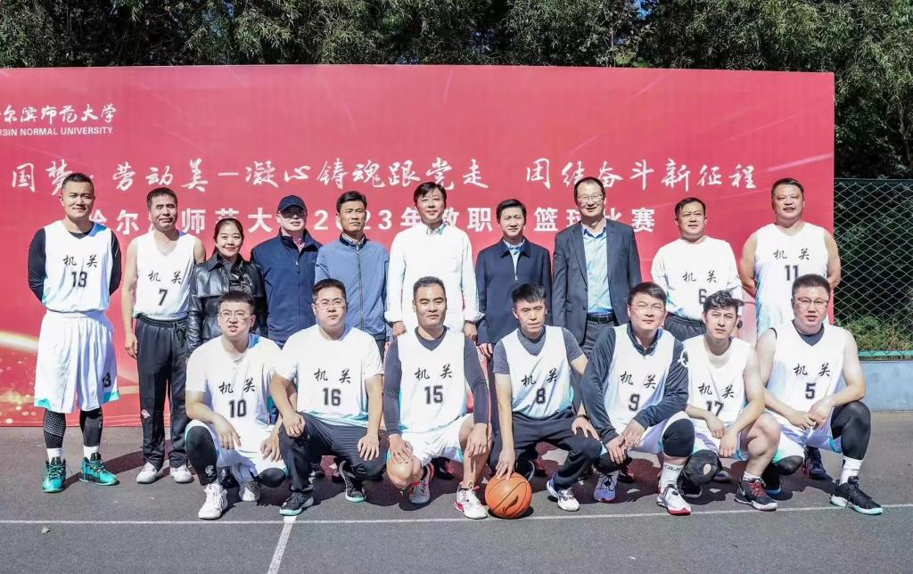 (赵慧宁/文)9月22日,我校篮球爱好者们迎来了展示团结合作精神、顽强拼搏意志的篮球盛会。由校工会主办、体育科学学院协办、教职工篮球协会承办的“中国梦·劳动美——凝心铸魂跟党走,团结奋斗新征程”哈师大2023年教职工篮球赛,在我校松北校区篮球场拉开序幕。校长蒋鲲,党委常委、副校长王辉,党委常委、副校长徐国峰,党委常委、人事处处长李世彬,党委常委、统战部部长张志宏,体育科学学院相关领导,校工会全体人员,各参赛单位领导、教职工及裁判员参加开幕式。开幕式由工会副主席杨世君主持。