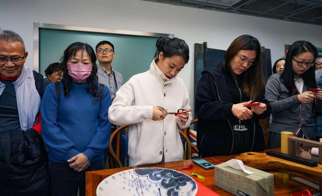 参访团在拼搏在线登录创意设计产业园观看了园区宣传片,深入走访园区各创意设计教师团队的工作室,深度体验了陶艺、剪纸艺术和书刻艺术等传统工艺的创意制作。