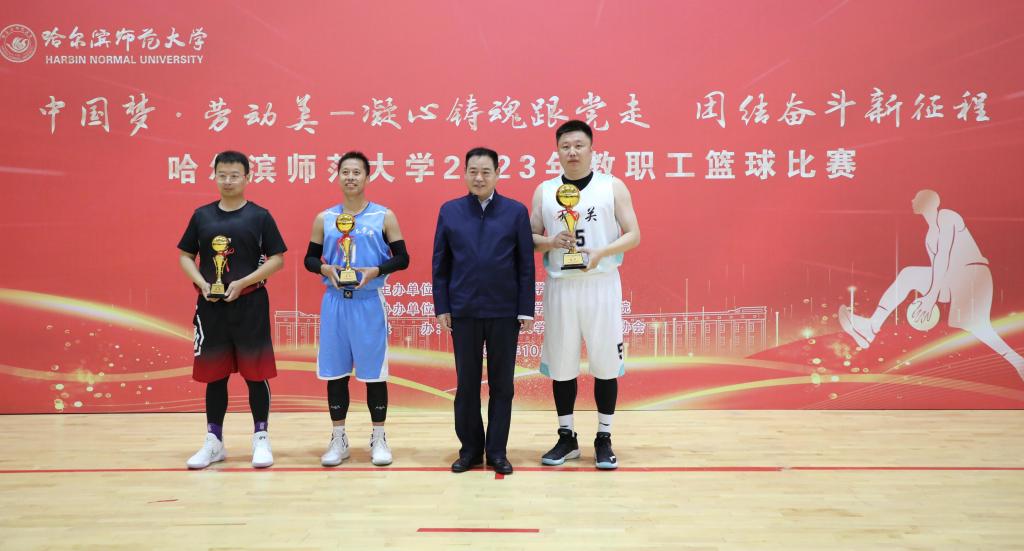 (赵慧宁/文)为深入学习贯彻党的二十大精神,进一步加强教职工的思想政治引领,丰富我校教职工业余文化生活,由校工会主办,体育科学学院协办、教职工篮球协会承办的“中国梦·劳动美——凝心铸魂跟党走,团结奋斗新征程”哈师大2023年教职工篮球赛,历时9天激烈的角逐,于10月11日在松北校区篮球训练馆圆满落下帷幕。