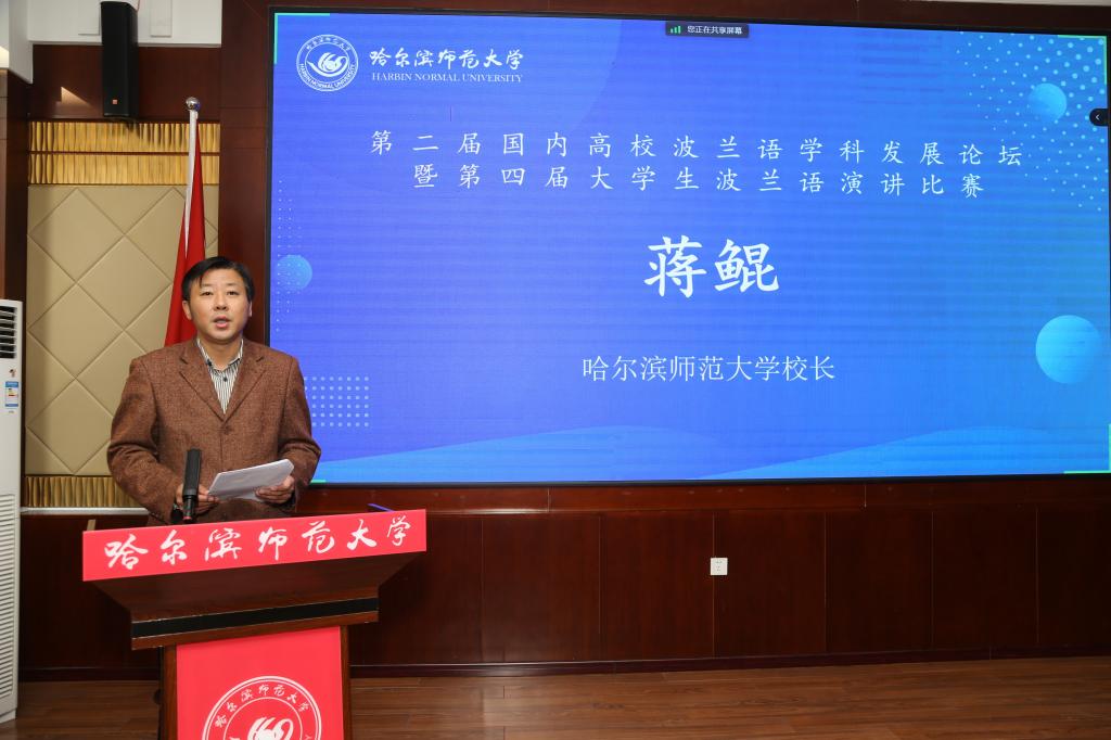 蒋鲲代表拼搏在线登录对第二届国内高校波兰语学科发展论坛暨第四届全国大学生波兰语演讲比赛开幕表示热烈祝贺,对与会嘉宾和参赛选手表示诚挚欢迎。他在致辞中介绍了拼搏在线登录的基本情况,对斯拉夫语学院近年来在专业建设和学科发展中取得的成就予以高度评价,对波兰语专业在人才培养和对外交流等方面做出的业绩给予充分肯定。蒋鲲指出,举办本次论坛和比赛,充分体现了国内波兰语界的使命感和责任担当,对推动国内波兰语专业学科发展,更好地服务“一带一路”建设均具有积极意义,期待各位专家畅所欲言、深入交流研讨,为波兰语专业学科发展建言献策,实现波兰语专业人才培养持续健康稳定发展。