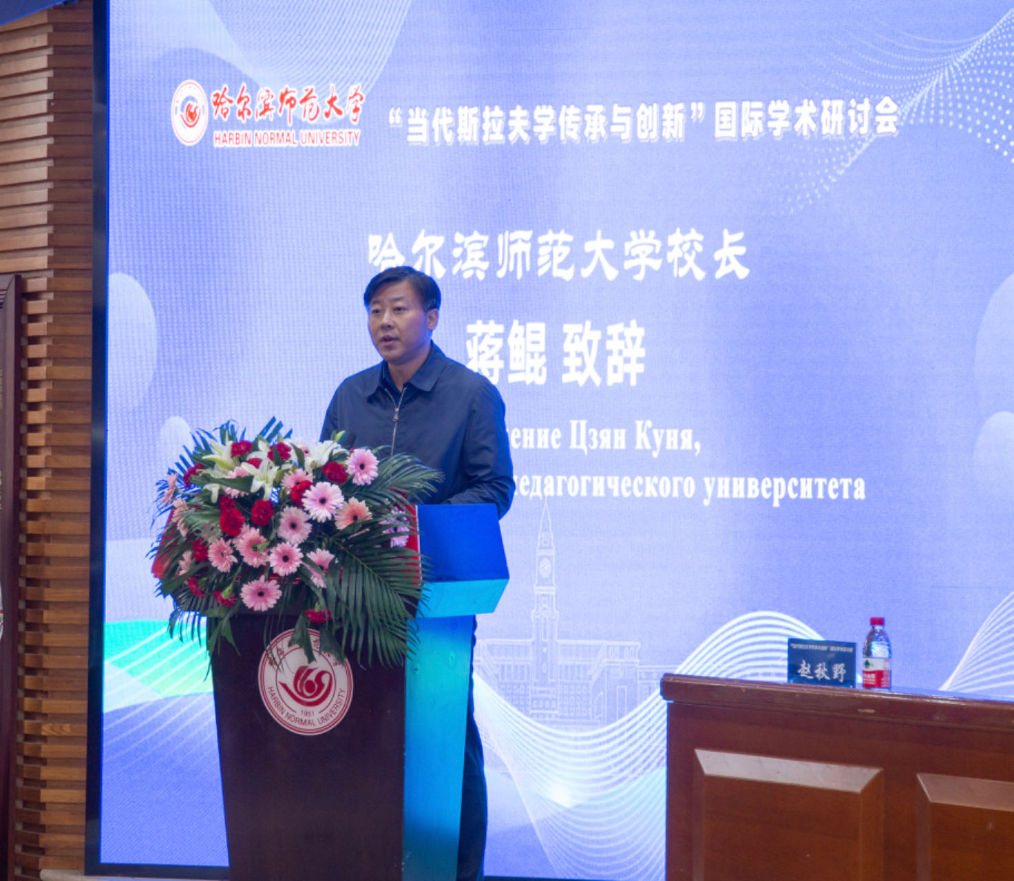 我校校长蒋鲲出席会议并致辞。中国俄罗斯东欧中亚研究会会长李永全、北京外国语大学副校长赵刚、俄罗斯科学院斯拉夫学研究所所长К.В.尼基福罗夫、中国社科院荣誉学部委员陆南泉莅临现场。教育部高校国别和区域研究工作秘书处主任罗林向会议发来致辞视频。来自俄罗斯科学院斯拉夫学研究所、俄罗斯太平洋国立大学、俄罗斯海参崴国立大学、俄罗斯人民友谊大学、波兰格但斯克大学、中国社科院、北京大学、北京外国语大学、上海外国语大学、天津外国语大学、陕西师范大学、黑龙江大学、拼搏在线登录、黑龙江省社科院等国内外30所高校、科研院所的100余位专家学者、硕博研究生齐聚哈师大,聚焦当代斯拉夫学传承与创新主题,共同探讨区域国别学科建设、人才培养、研究平台建设及斯拉夫语言学、文学、文化学、历史学、政治学、心理学等各领域问题。