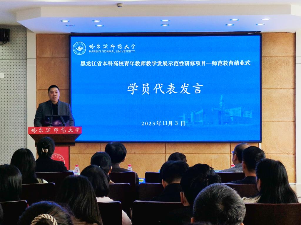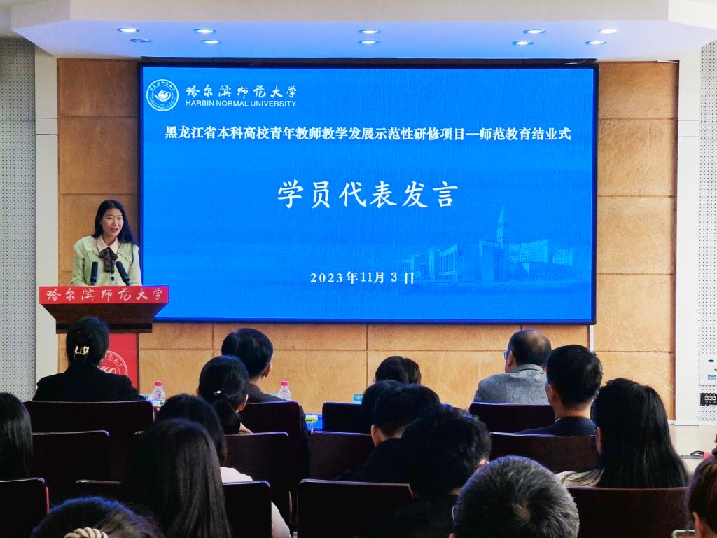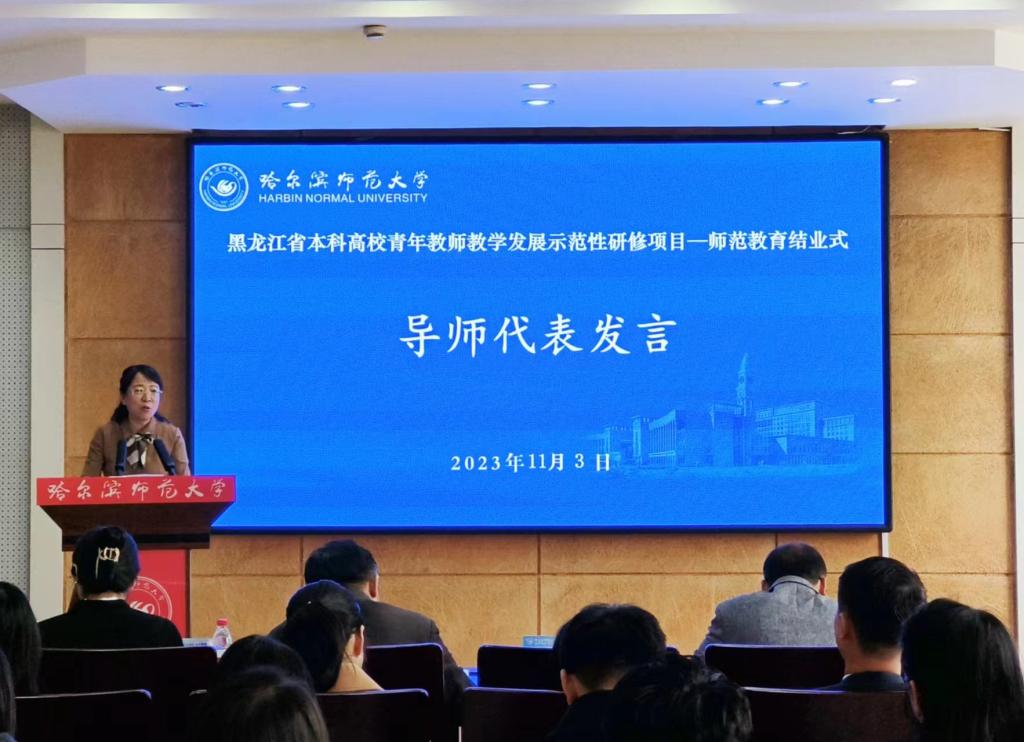 (李璐/文)11月3日上午,黑龙江省本科高校青年教师教学发展示范性研修项目师范教育研修班结业式在行知楼746会议室召开。校长蒋鲲出席结业式并讲话。教务处相关人员、研修导师代表文学院院长侯敏、来自全省10所高校的43名参培青年教师参加结业式。会议由教务处副处长李苗主持。