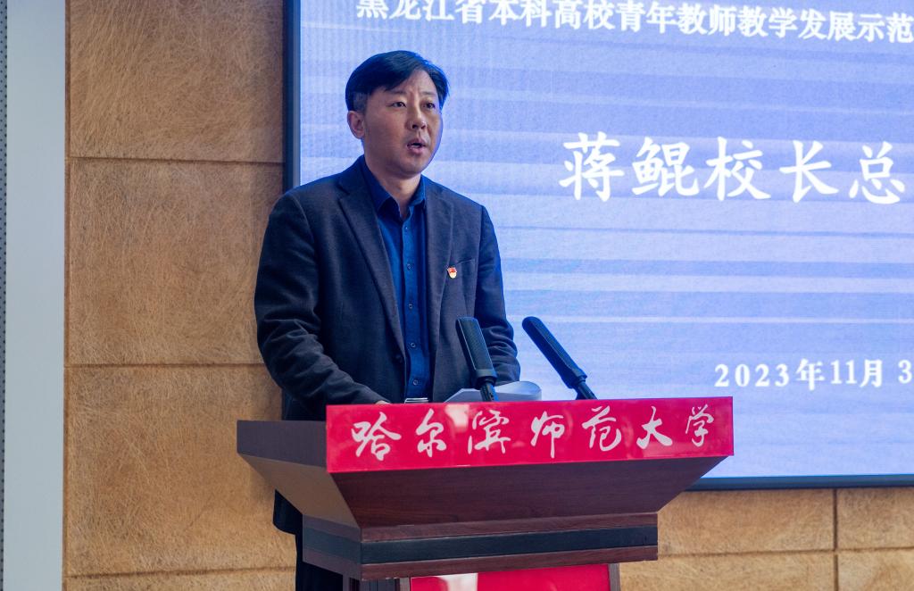 蒋鲲校长总结时,首先代表学校向研修班的成功举办和高质量完成研修任务的全体参培教师表示热烈祝贺。他强调,黑龙江省本科高校青年教师教学发展示范性研修项目,旨在打造一支能够引领未来教育教学改革的骨干教师队伍,通过资源共享和校际协同,促进教师整体育人能力提升和高校教育教学水平均衡发展。四周研修,全体研修教师通过专题辅导、教学技能、教学观摩、跟岗锻炼、教学研讨和教学展示等多种形式,围绕人才培养的教育教学理念、教学方法、教学设计、教学研究,从专业建设、课程建设、数字化能力提升、实践教学、教学成果奖凝练等方面进行了较为深入的学习交流。学校高度重视,精心谋划,制定了高质量培训方案,配备了高水平指导教师,做好了高要求服务保障,此次培训专家水平高、培训内容丰富、研讨交流充分,达到了预期目的。他期望,各位青年教师生逢盛世,能牢记为党育人、为国育才的初心使命,树立“躬耕教坛、强国有我”的志向和抱负,积极探索新时代教育教学改革,不断提升教书育人本领,自信自强、踔厉奋发,生逢盛世而不负盛世,生逢其时而奋斗其时,努力为龙江振兴、强国建设、民族复兴伟业贡献青年教师的智慧和力量!