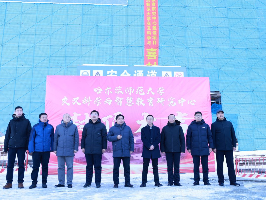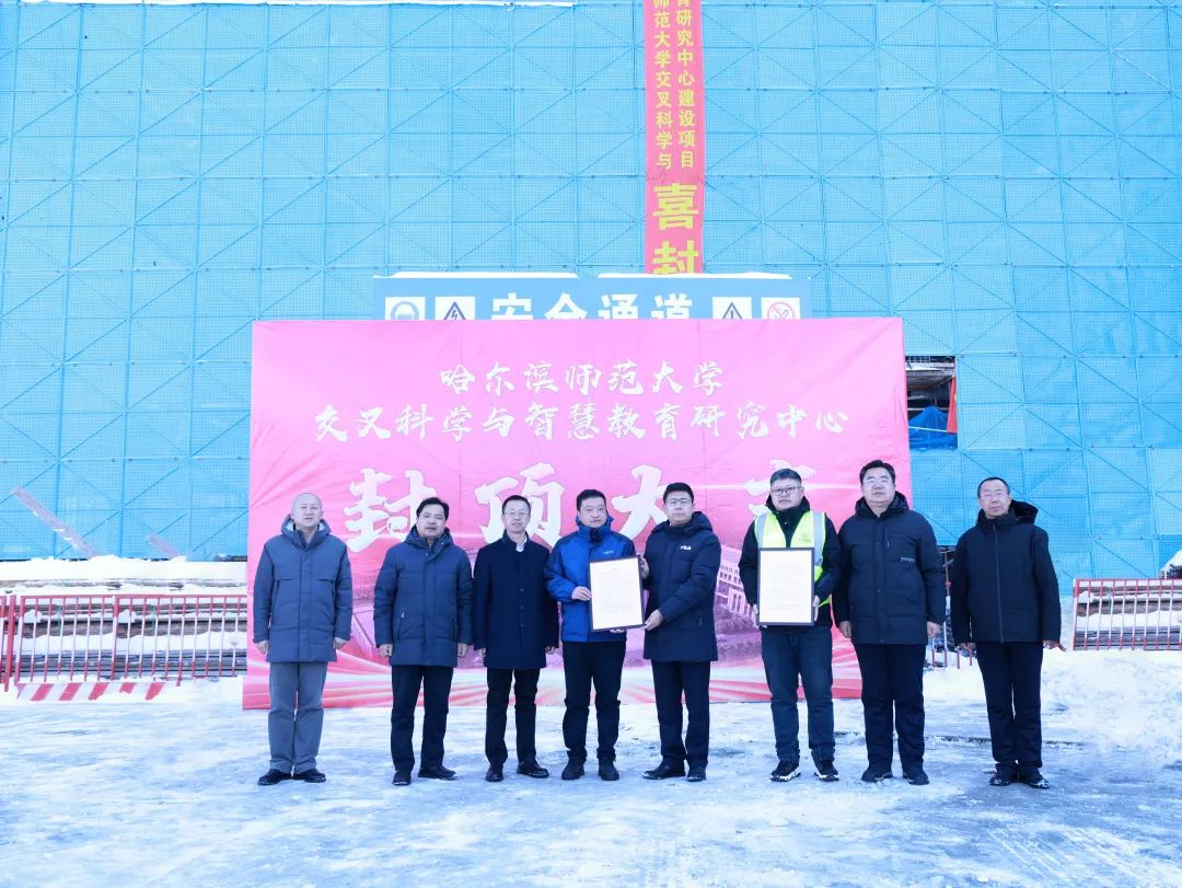 (陈昌/文)在学校和参建单位的通力合作和共同努力下,“拼搏在线登录交叉科学与智慧教育研究中心建设项目”主体结构顺利封顶,并于11月 7日上午,举行封顶仪式。校党委常委、副校长尹剑锋,校党委常委、统战部长张志宏,参建单位“中国建筑第六工程局有限公司”“东北林业大学工程咨询设计研究院有限公司”“黑龙江融辉工程咨询有限公司”和学校项目管理相关单位负责人参加了仪式。
