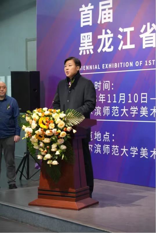 中国工艺美术学会党委书记、理事长才大颖,省文联党组书记马新,我校校长蒋鲲,黑龙江省工艺美术协会名誉会长吴援朝,黑龙江东方学院副校长韩玉屏,省美术家协会、哈尔滨学院艺术与设计学院、黑龙江东方学院艺术设计学院、哈尔滨商业大学设计艺术学院等单位负责同志,我校美术学院领导班子全体成员以及获奖师生代表共同出席开幕式。开幕式由黑龙江省美术家协会驻会副主席、秘书长石正军主持。