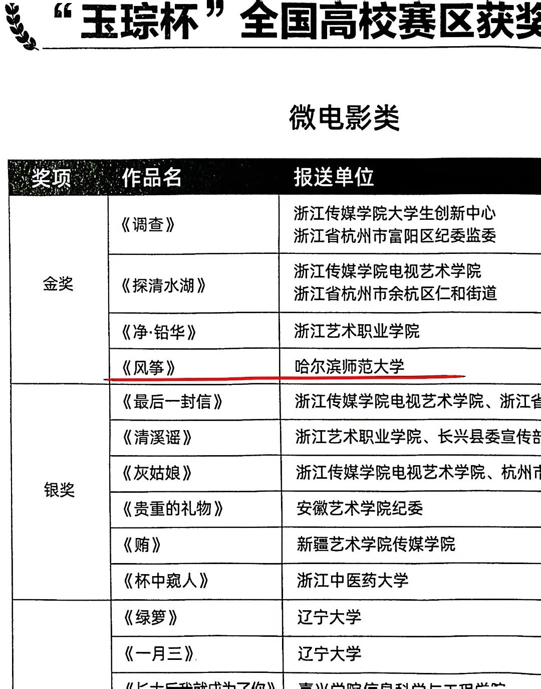 (魏鹂萱/文)12月12日,第五届“玉琮杯”清廉微电影微视频大赛在杭州顺利举行颁奖仪式,我校传媒学院师生团队创作的廉洁微电影《风筝》荣获高校赛区微电影类金奖。