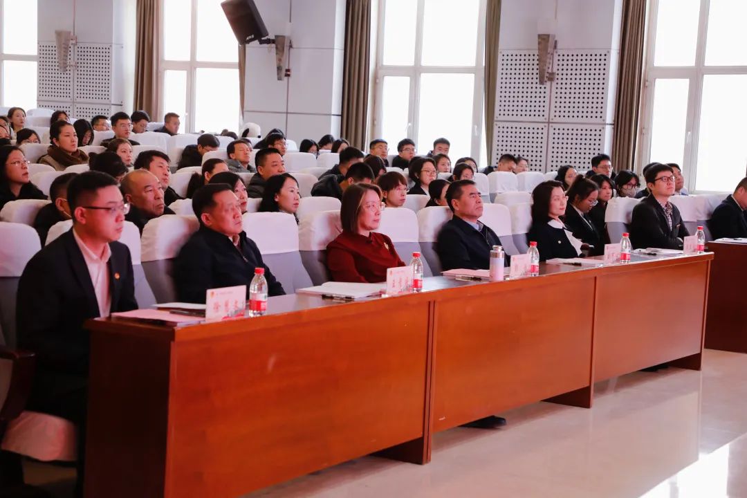 (刘强/文)为组织引导广大团员青年坚持以习近平新时代中国特色社会主义思想为指导,深入学习贯彻党的二十大精神,扎实推进团员和青年主题教育,做好2023年学校共青团“基层组织建设年”验收总结工作,夯实学校共青团基层组织建设,12月20日上午,我校在培训中心二楼报告厅召开2023年共青团“基层组织建设年”工作总结会。校党委副书记、工会主席郭砾出席会议,党委组织部、学生工作部(学生处、武装部)、团委负责同志,各基层党委副书记、团委负责人、全体辅导员、学生团干部代表200余人参加会议。会议由校团委书记刘春玲主持。