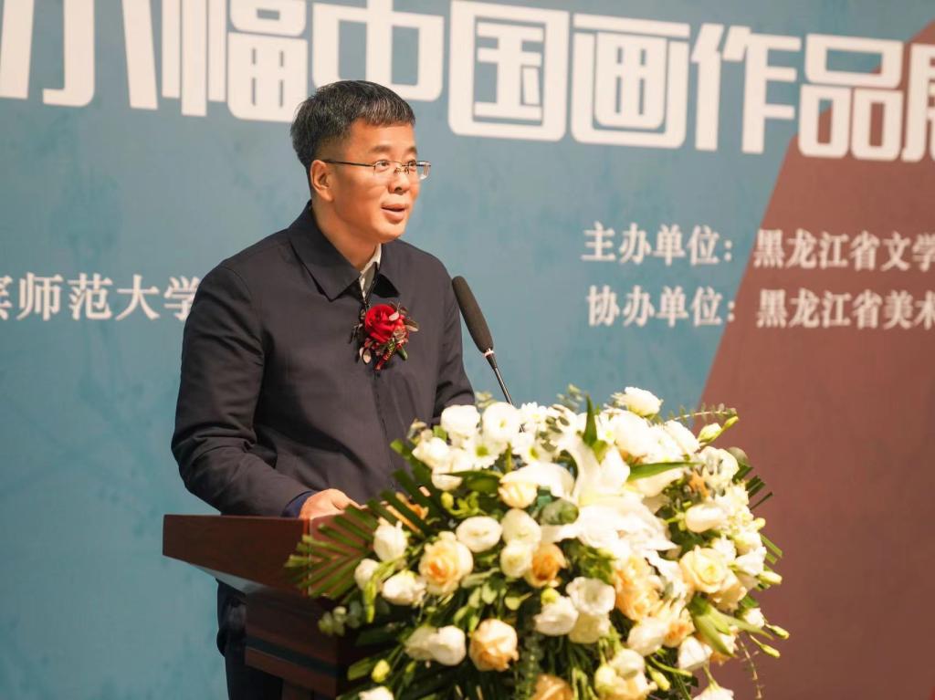 孙洪庆一行出席在我校美术馆举办的第二届黑龙江省小幅中国画作品展开幕式,到我校创意设计产业园区开展实地调研考察,听取园区发展建设情况汇报,了解园区团队制作的创意设计产品。