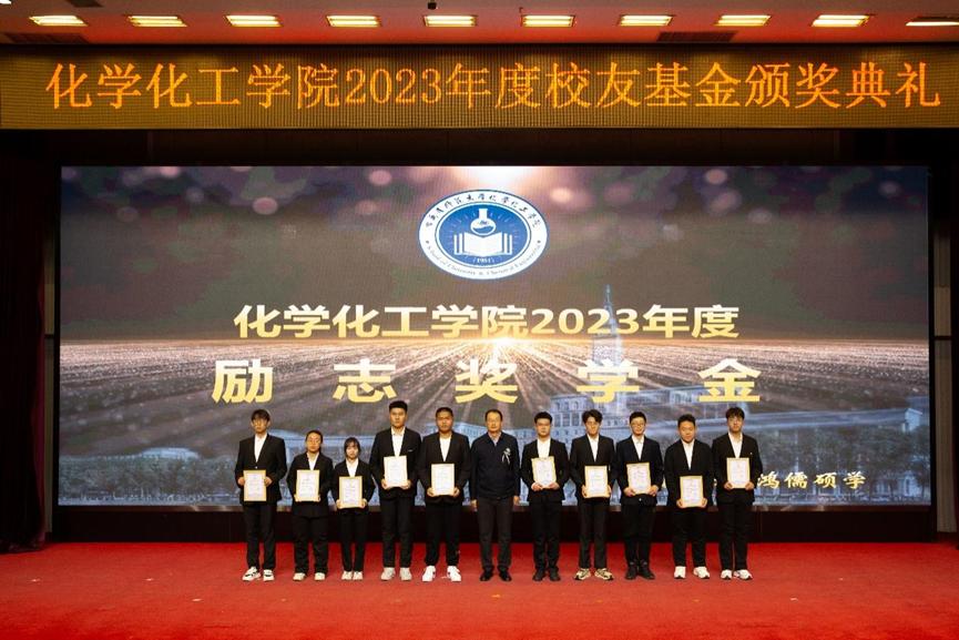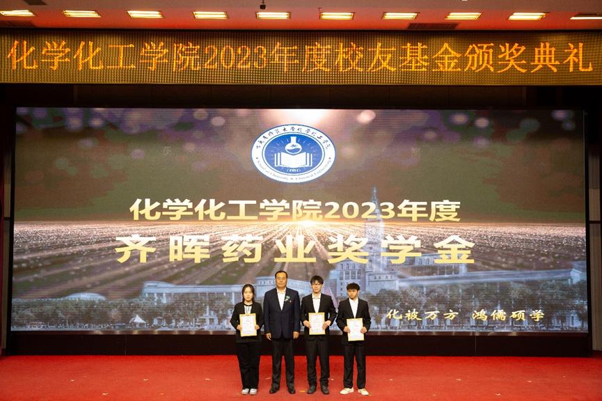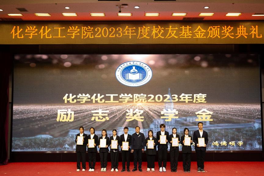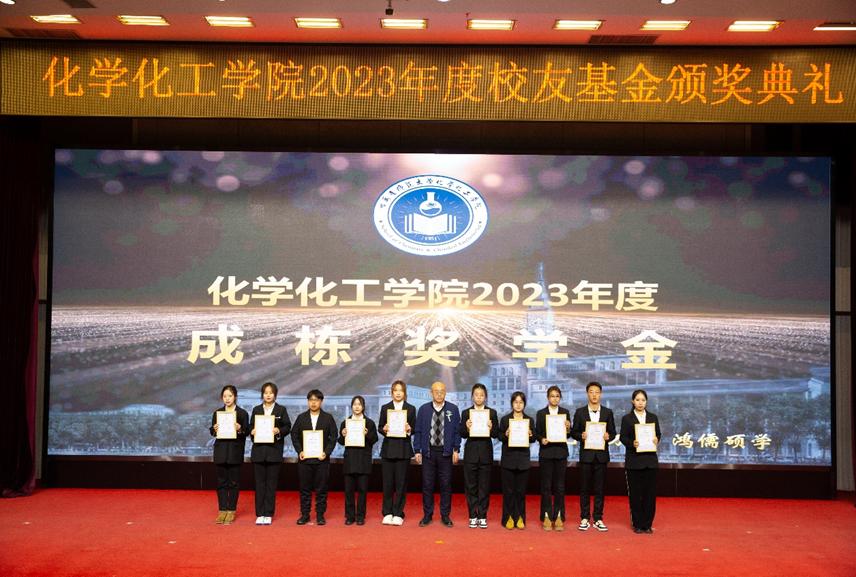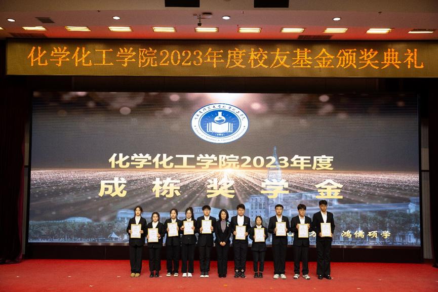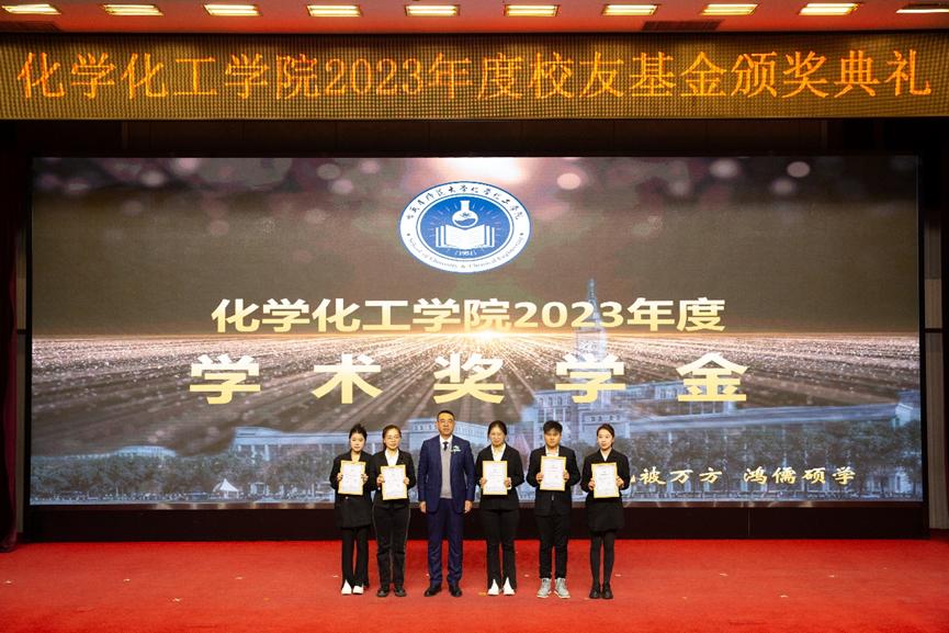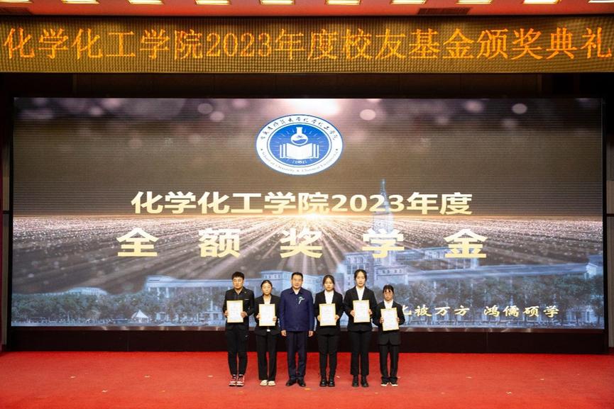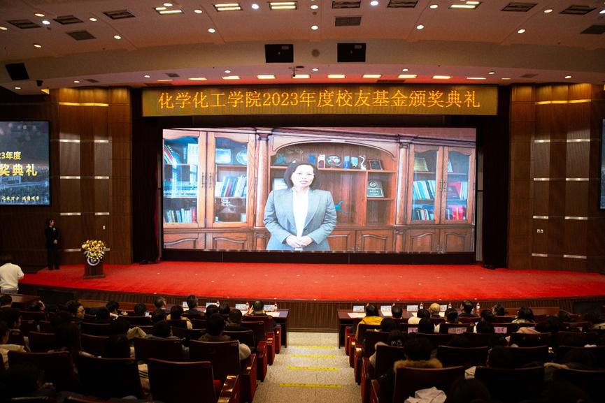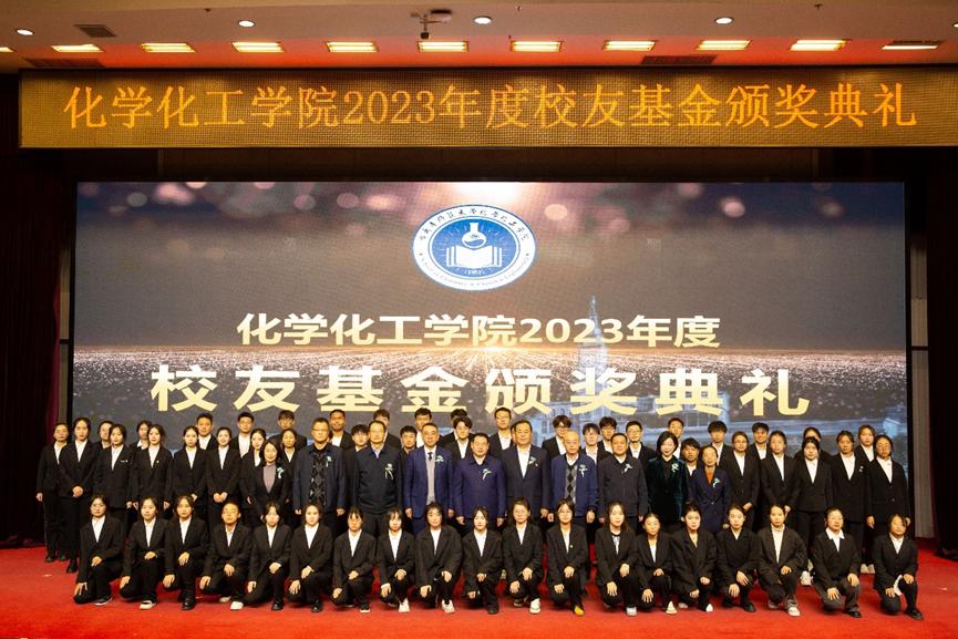 (刘倩/文)为全面贯彻落实党的二十大精神,进一步深入领会全国高校思想政治工作会议精神,加强我校大学生思想政治教育“112349”工作模式的实施,学业激励、困难帮扶。11月15日下午,化学化工学院在科学会堂举行2023年度“化学校友基金”颁奖典礼。校党委常委、副校长马明,党委办公室主任、教育发展基金会秘书长宿建,学生工作部(学生处、武装部)部(处)长王彦庆,校团委书记刘春玲,学生就业指导处处长王阿诺,化学化工学院91级校友、财务处处长杨宝君,化学化工学院领导班子成员及全体教师、辅导员、学生代表参加颁奖典礼,线上抖音直播同时进行,此次典礼由化学化工学院党委副书记任伟主持。