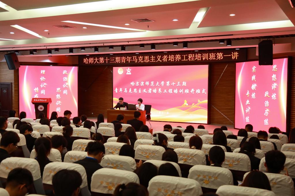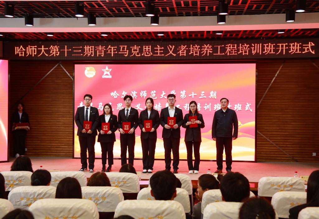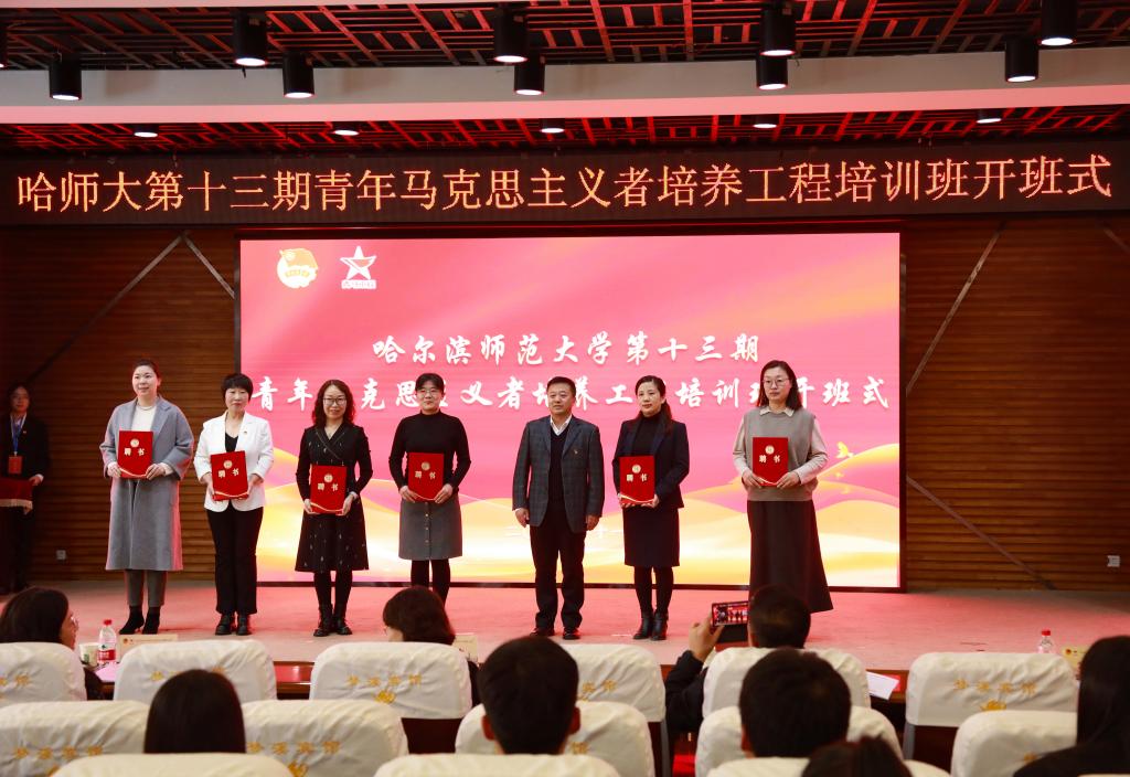 (刘强/文)11月15日下午,我校在梦溪宾馆二楼报告厅举行第十三期青年马克思主义者培养工程培训班开班式。校党委副书记李庆霞出席仪式并讲话。学校党委宣传部、学生工作部(学生处、武装部)、马克思主义学院、共青团哈尔滨市呼兰区委员会、共青团杜尔伯特蒙古族自治县委员会负责同志、学校团委全体教师、第十二期“青年马克思主义者培养工程”培训班结业优秀学员代表、第十三期“青年马克思主义者培养工程”培训班全体师生参加会议。开班式由校团委书记刘春玲主持。