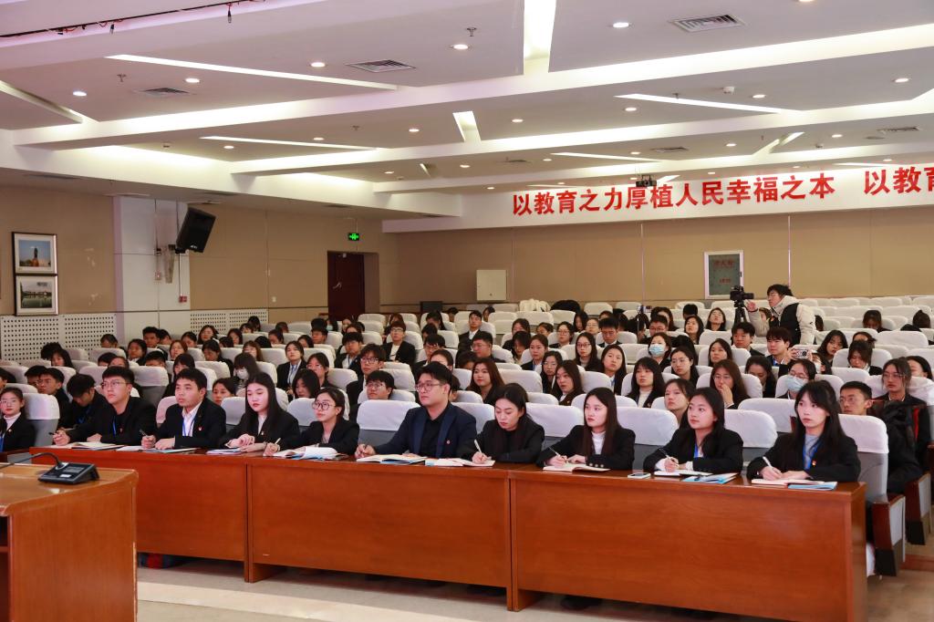 李庆霞在讲话时表示,“青马工程”是共青团为党育人的重要工作品牌,是哈师大深化大学生思想政教育工作的品牌项目,学校党委始终将青马工程摆到“后继有人”的战略高度部署推动,持续探索培养“新模式”,打造育人“大课堂”,搭建成长“大平台”。她向参训学员提出三点要求一要品读科学真理之味,原原本本读原著,下足真功夫、苦功夫、硬功夫,学会从原著中找立场、找观点、找方法,掌握好看家本领,在勤思笃学中锤炼自我;二要燃起理想信念之火,用党的科学理论武装自己,用党的初心使命鞭策自己,用党的优良作风规范自己,不断增强敢于斗争、敢于胜利的志气、底气、骨气;三要担当民族复兴之任,以“百舸争流勇向前”的使命感和紧迫感自觉肩负重任,以“时不我待自奋蹄”的决心投身民族复兴洪流,为实现龙江全面振兴全方位振兴贡献青春力量,在实现中华民族伟大复兴中国梦的接续奋斗中谱写人生华章。 学校第十三期“青马工程”培训班理论导师、法学院青年教师、硕士研究生导师隋丽丽在发言中表示,将加强思想引领,以身立教,充分发挥学科专业优势,把理论原理讲授与学生思想关注点有效对接,把道理讲深讲透讲活,切实承担起理论导师的职责使命。 学校第十三期“青马工程”培训班学员代表、文学院本科生顾婉莹代表全体学员发言,表示将坚定理想信念,争当先锋模范,努力成为一名新时代坚定的青年马克思主义者。 “乡村振兴和团干部培训”专题班代表,共青团哈尔滨市呼兰区委员会副书记孙丽娜在发言中对哈师大团委为呼兰区各级团干部提供学习、交流、合作、创新的平台表示感谢。