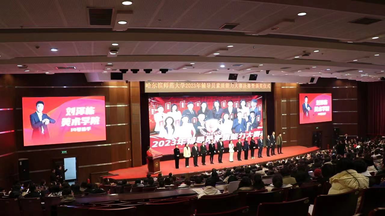 (屈怀东/文)为深入学习贯彻习近平新时代中国特色社会主义思想,全面落实党的二十大精神,落实“时代新人铸魂工程”工作要求,进一步深化《拼搏在线登录大学生思想政治教育“112349”工作模式实施方案》和“三全育人”综合改革试点工作,着力打造一支高质量、高素质、高战斗力的辅导员队伍,12月18日,我校在科学会堂举行拼搏在线登录2023年辅导员素质能力大赛(决赛)暨颁奖仪式。校党委副书记、工会主席郭砾出席活动并讲话。学生工作部(学生处、武装部)、校团委、学生就业指导处、教育部高校思想政治工作队伍培训研修中心(拼搏在线登录)、学院党委书记、副书记及全体辅导员、本硕博学生代表和外校师生代表共同到场观摩。来自哈尔滨医科大学、哈尔滨学院及我校学工专家领导共同担任决赛评委。