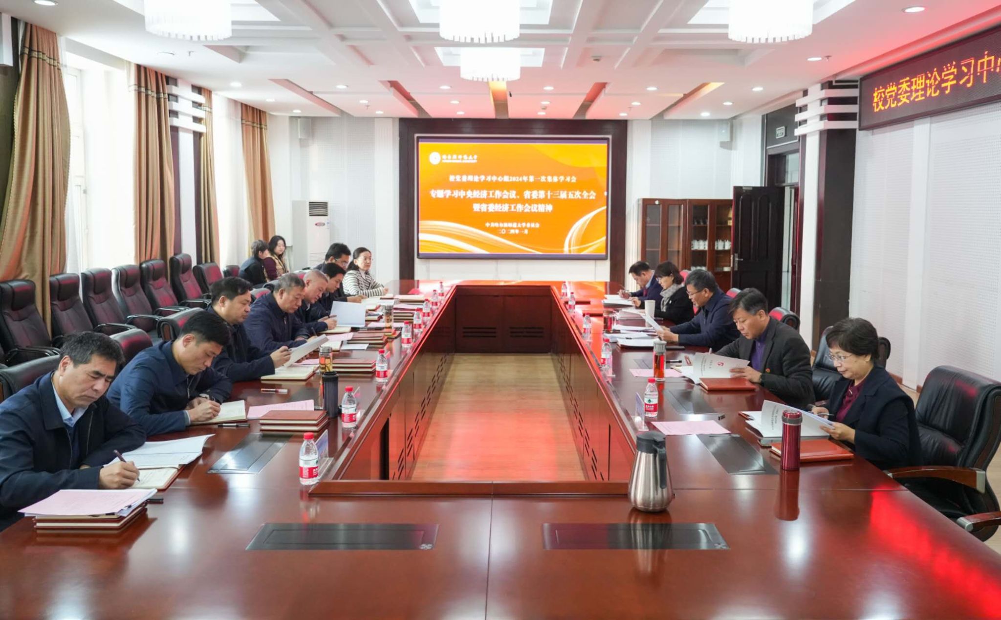(刘思言/文)1月5日,校党委理论学习中心组召开2024年第一次集体学习会。学习贯彻落实中央经济工作会议精神,落实省委十三届五次全会暨省委经济工作会议精神。校党委书记孙立军主持会议并讲话,校党委理论学习中心组全体成员参加会议。