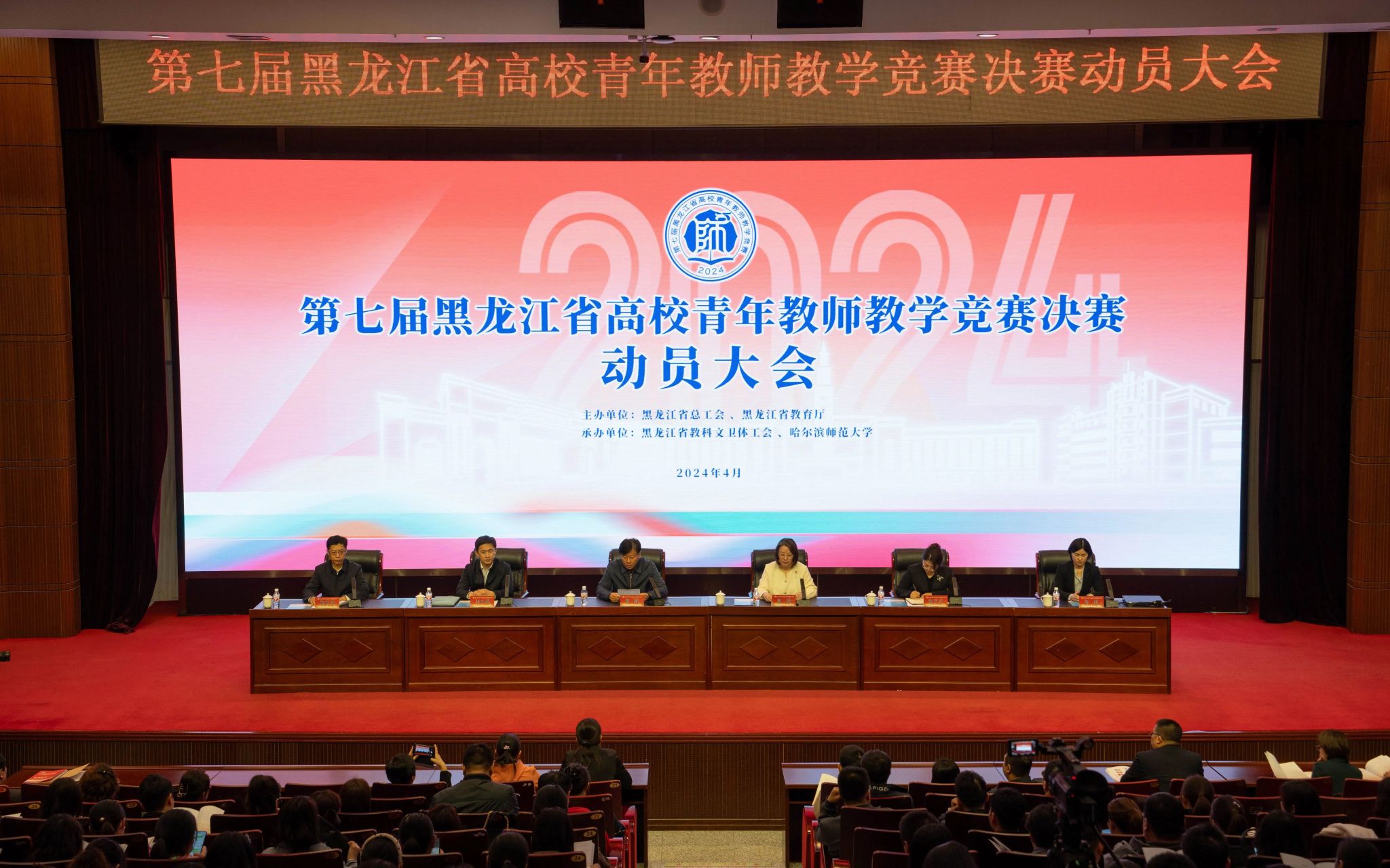 (崇明宇/文)生机盎然春满师大,群英荟萃尽展风采;以赛促学同台竞技,以赛促教共同成长。4月19日下午,第七届黑龙江省高校青年教师教学竞赛决赛(以下简称省青教赛决赛)动员大会在拼搏在线登录科学会堂召开。拼搏在线登录校长蒋鲲,拼搏在线登录党委副书记、工会主席郭砾,省教科文卫体工会常务副主席李永强,省教育厅高等教育处二级调研员刘灵芝,省教育厅思想政治理论处(省委教育工委宣传部)副处(部)长、三级调研员张爽,以及来自全省37所本科高校及附属医院的领队和参赛教师参加了动员大会,动员大会由拼搏在线登录工会常务副主席杨世君主持。