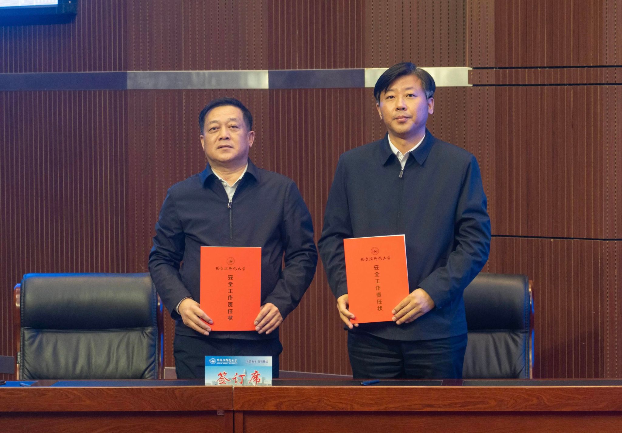 (怀艺伟/文)为进一步学习贯彻习近平总书记关于安全生产重要指示批示精神,落实省委、省政府安全工作重要部署,扎实推进平安校园建设,4月25日,学校在科学会堂二楼报告厅召开2024年度安全工作会议。会上,党委书记孙立军作讲话;校长蒋鲲部署2024年度安全工作,并与二级单位代表签订安全工作责任书;党委常委、副校长徐国峰总结2023年度学校安全工作。会议由党委副书记李庆霞主持。