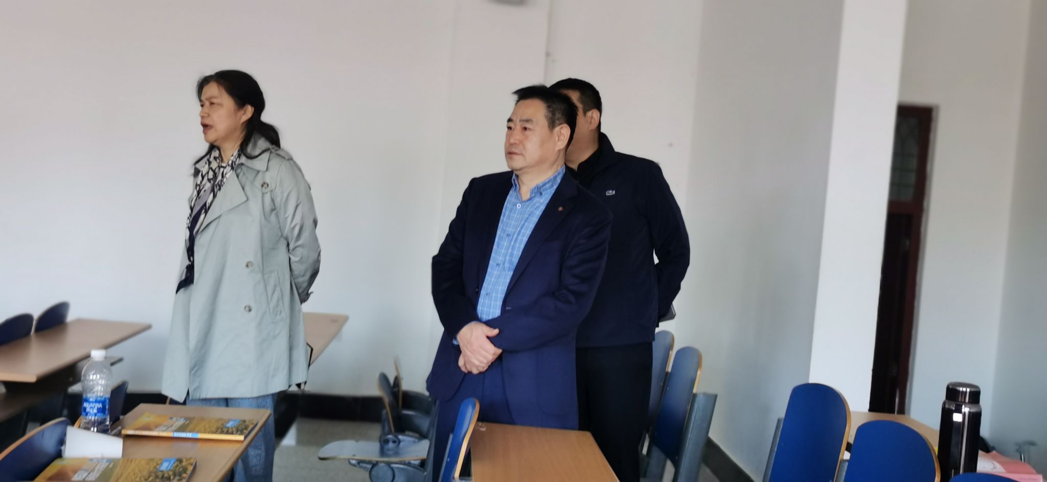 校长蒋鲲带队检查文学院和教育科学学院教学环境文化建设及课堂教学情况;深入文学院教师宋保伟《中国当代文学2》课堂,线上听取教育科学学院教师刘佳《数学思想方法》课程。
