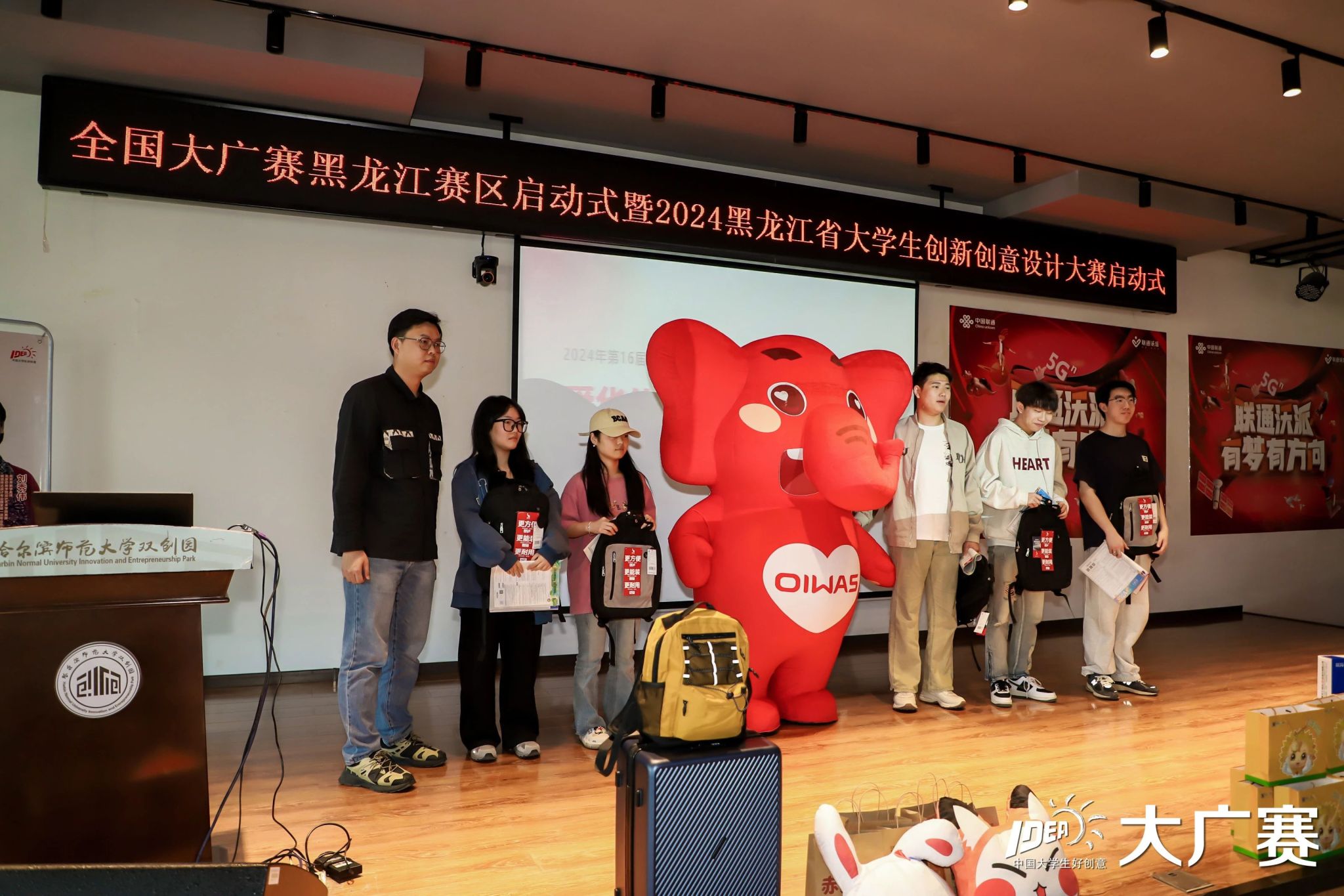 (史伟争/文)5月8日,第十六届全国大广赛黑龙江赛区启动暨巡讲活动在我校创意产业园成功举办。校党委副书记、工会主席郭砾,中国联通哈尔滨市分公司副总经理姜志华,大广赛全国组委张潇元,北京印刷学院教授、教育部设计学类教指委委员刘秀伟,朗圣药业推广经理沈阳、爱华仕箱包副总经理邓木荣,以及葵花药业命题企业代表、省内参赛院校专业负责人、学校传媒学院相关负责同志、师生代表300余人参加了启动及巡讲活动。