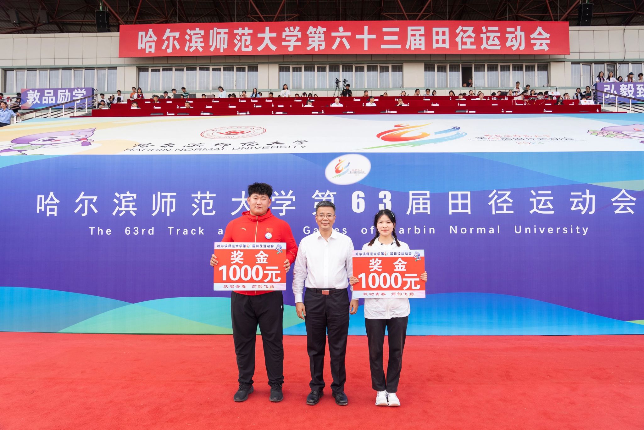 党委书记孙立军为在本届运动会上打破纪录的同学颁奖