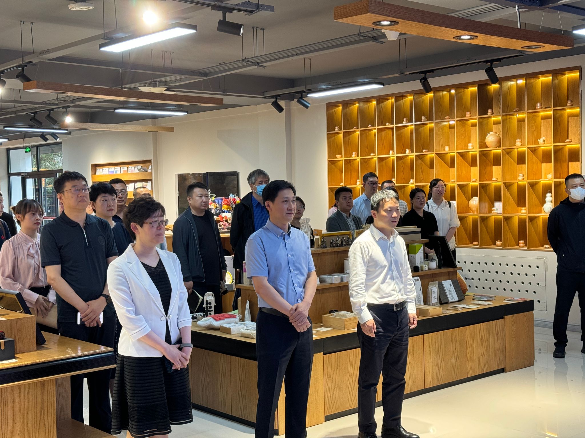 王辉对宁飞飞一行的到访表示热烈欢迎,并简要介绍了我校创意设计产业园区建设的基本情况。参访人员观看了园区宣传片,参观了创意设计产业团队设计制作的一系列创意设计成果,走访了园区各创意设计团队工作室,体验了“上京窑”黑龙江特色高温陶瓷文创产品、非物质文化黑龙江桦树皮剪纸、龙江书刻“冰雪拓”等创意设计成果,详细了解我校创意设计成果转化情况、工作室运营模式和园区版权保护情况。