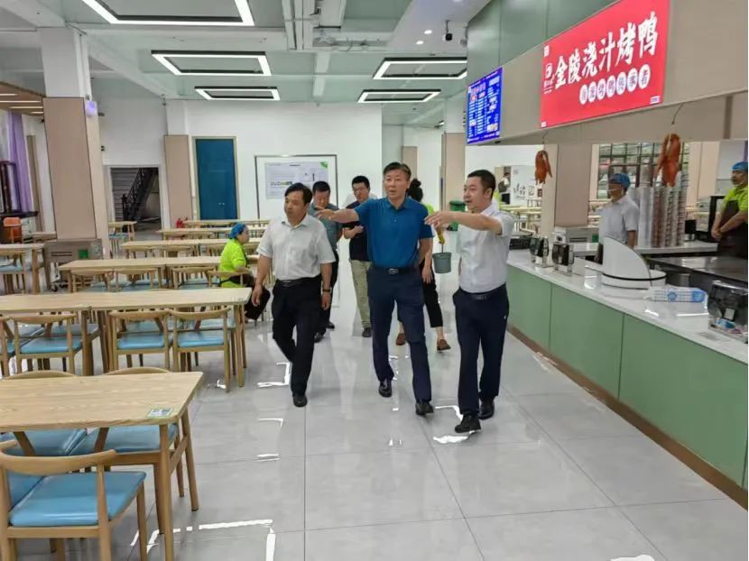 在学生食堂,学校领导分别深入滨湖园、稻香园食堂,了解新学期餐饮保供准备情况,重点查看了食堂部分区域装修改造及食堂区、备餐售餐区、厨房操作区基本情况。蒋鲲强调,食堂是学校的窗口,体现的是学校的管理能力和管理水平,要进一步加强食堂设施设备升级改造,为师生员工提供舒适的就餐环境;要统筹做好开学、新生报到、中秋、国庆等关键时间节点和日常食品安全管理工作,狠抓食品采购、加工、贮存、食品留样、餐饮具消洗消毒等环节,确保食品安全万无一失;要全力做好新学期开学后的食堂餐饮保供工作,强化人员管理,坚持服务至上,提升服务品质,丰富售卖菜品,全力为师生做好餐饮服务工作。