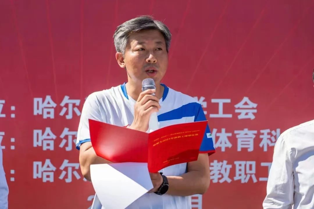 蒋鲲在致辞中指出,2024年是中华人民共和国成立75周年,是实现“十四五”规划目标任务的关键一年,也是全面贯彻落实中国工会十八大精神的开局之年。近年来,学校工会深入贯彻落实党的二十大精神和习近平总书记关于加快推进体育强国建设的重要论述,“广泛开展全民健身活动”,强化教职工的思想政治引领,用丰富的职工文体活动,促进教职工间的沟通和交流,陆续组织开展了以“中国梦·劳动美”为主题的系列丰富多彩、特色鲜明的群众性体育活动,营造了全民健身的良好体育文化氛围,深受我校广大教职工的喜爱。