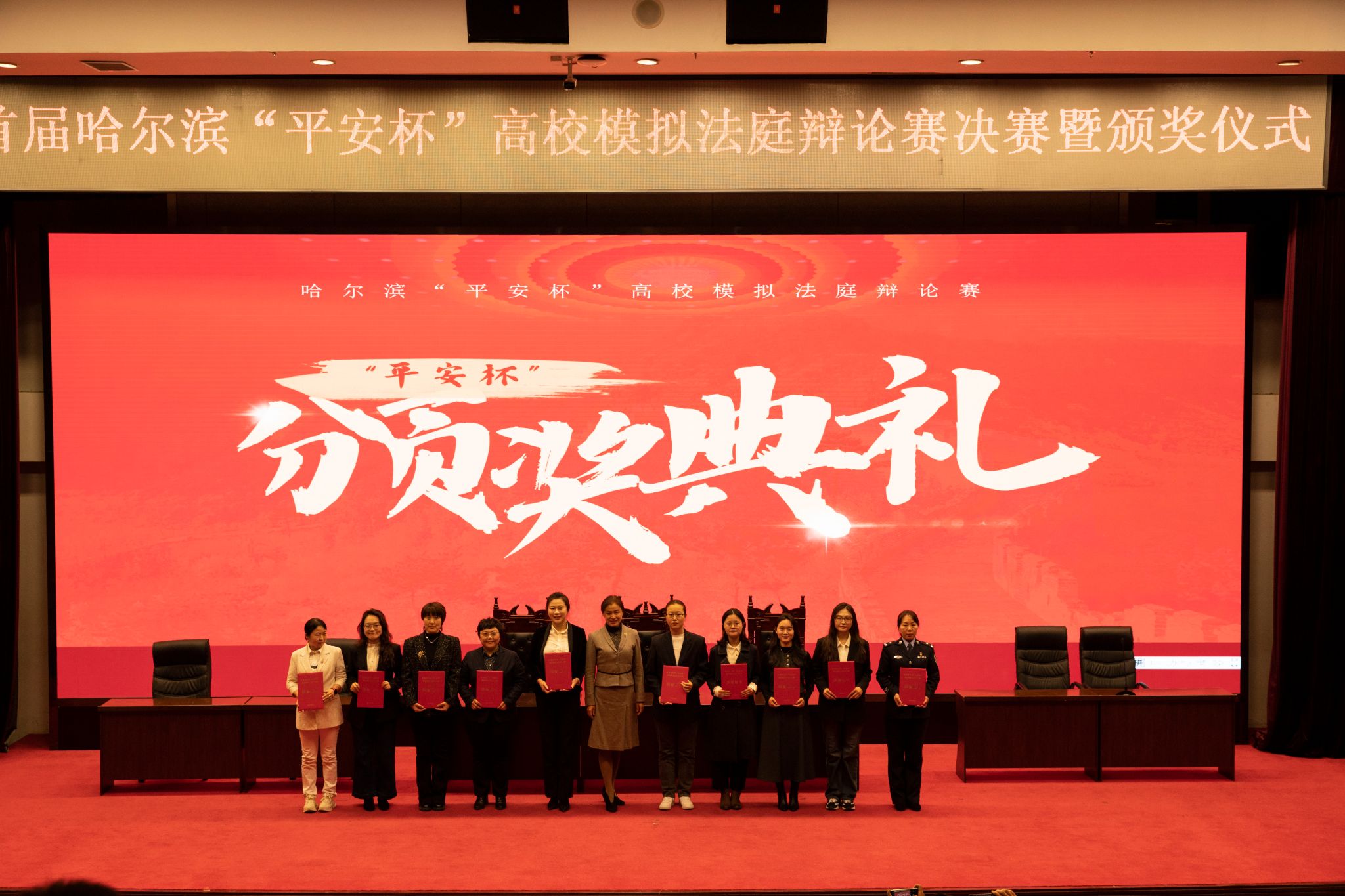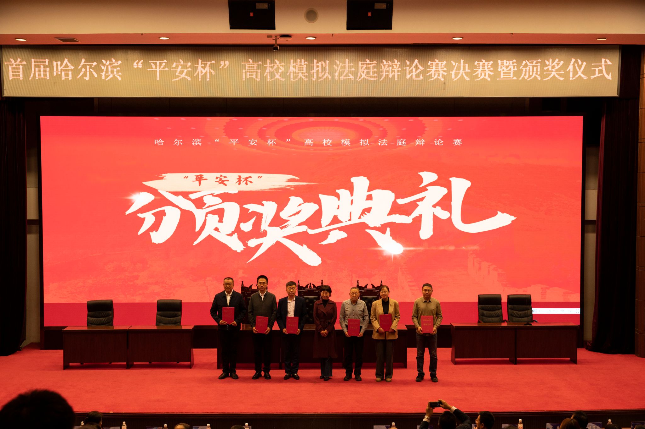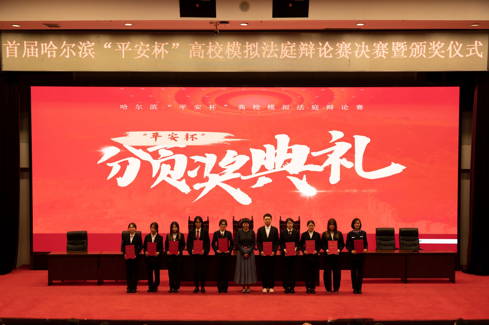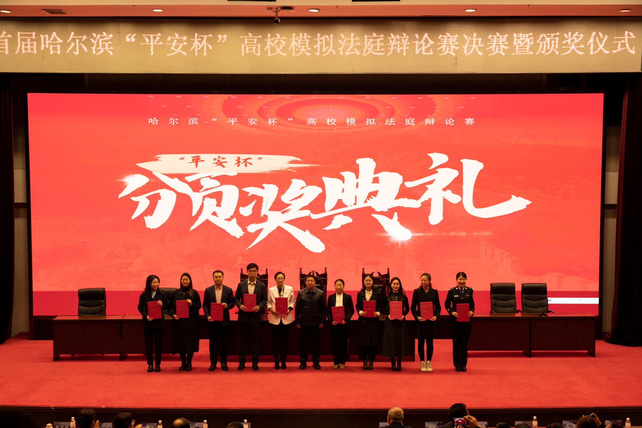 决赛分为刑事组和民事组两个阶段赛事。双方队伍在庭前做精彩简介,随后围绕案例展开激烈辩论,评委老师根据各支队伍的表现给予公正、全面的评价。经过紧张激烈的角逐,最终,哈尔滨医科大学队获得刑事组冠军,黑龙江大学队获得亚军;黑龙江大学队获得民事组冠军,哈尔滨商业大学队获得亚军。大赛还评选出“最佳辩手”“优秀辩手”“明日之星”“优秀领队”“特殊贡献奖”“优秀组织奖”等奖项。颁奖嘉宾为获奖者颁奖,并鼓励赛手们继续努力,为法治事业贡献力量。